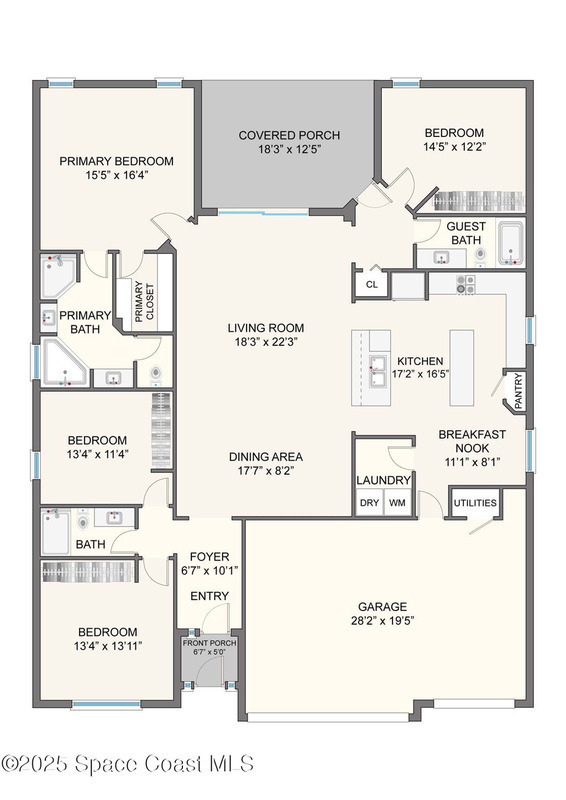 Welcome to The Sanctuary at Sawgrass Lakes--West Melbourne's premier gated enclave. This stunning lakefront 4-bedroom, 3-bath, 3-car garage home was built in 2019 and feels better than new. Inside, you'll find a designer kitchen with a peninsula breakfast bar, secondary island, granite countertops, 42'' white cabinets with crown molding, stainless appliances, and a walk-in pantry. Elegant upgrades include tray ceilings, plantation shutters, electric lanai blinds, and custom laundry cabinetry. Enjoy sunsets from the screened patio overlooking the lake and fully fenced backyard with private irrigation well and brick-paver entertaining area. Resort-style amenities include a clubhouse, fitness center, tennis and pickleball courts, playground, and the community's signature water park. Centrally located near top schools, shopping, dining, I-95, and the beach--this is the lifestyle you've been waiting for.