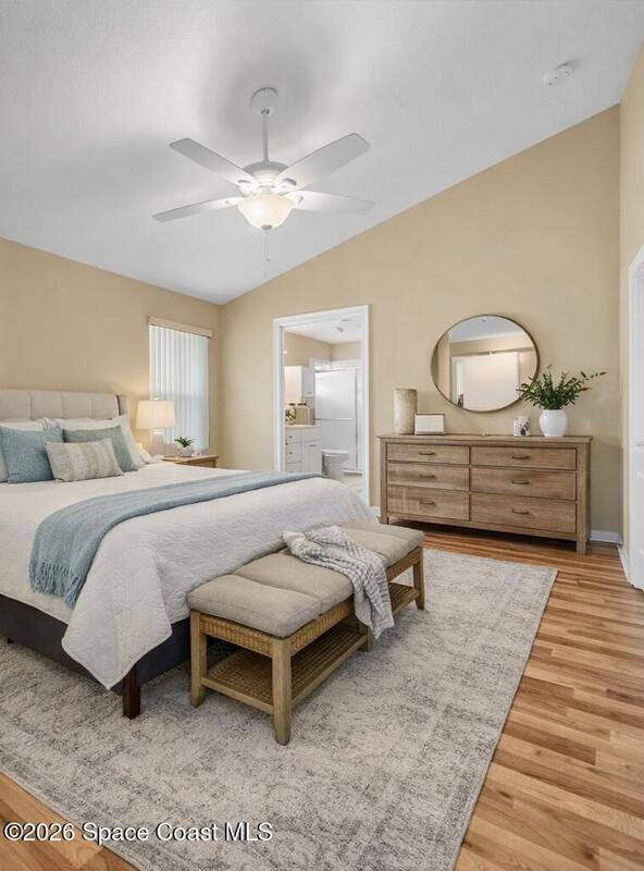 This beautifully updated, move-in ready home stands out as one of the best opportunities in Grand Isle's sought-after 55+ community. Homes with this level of upgrades and low-maintenance living rarely come to market. Inside, you'll find a light and open floor plan with laminate flooring throughout and a thoughtfully updated kitchen featuring granite countertops, modern cabinetry, newer appliances, a gas stove, and a movable island--perfect for entertaining or everyday living. Both bathrooms have been tastefully renovated, and the spacious primary suite boasts a custom-designed walk-in closet with built-ins and drawers, blending luxury with function. The enclosed, air-conditioned porch provides valuable additional living space and a bright retreat to relax or host guests year-round. Elegant touches such as custom blinds and plantation shutters complete the home. Grand Isle offers truly low-maintenance living, with the HOA covering lawn care, irrigation, and exterior painting.