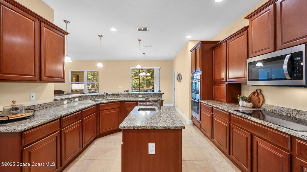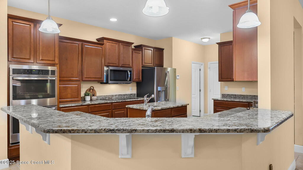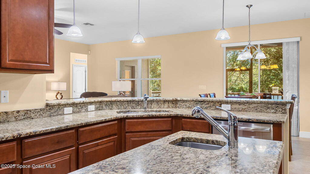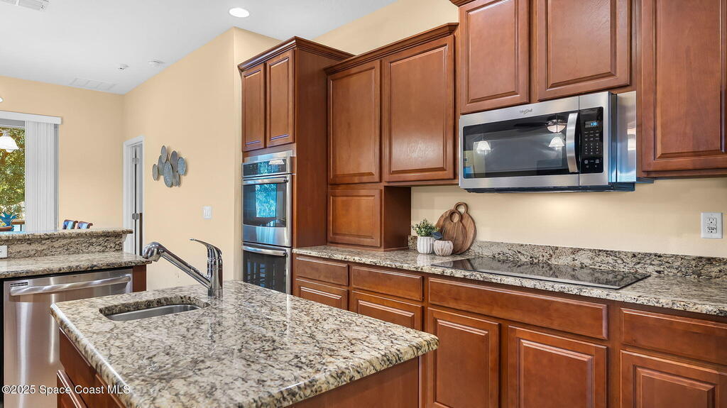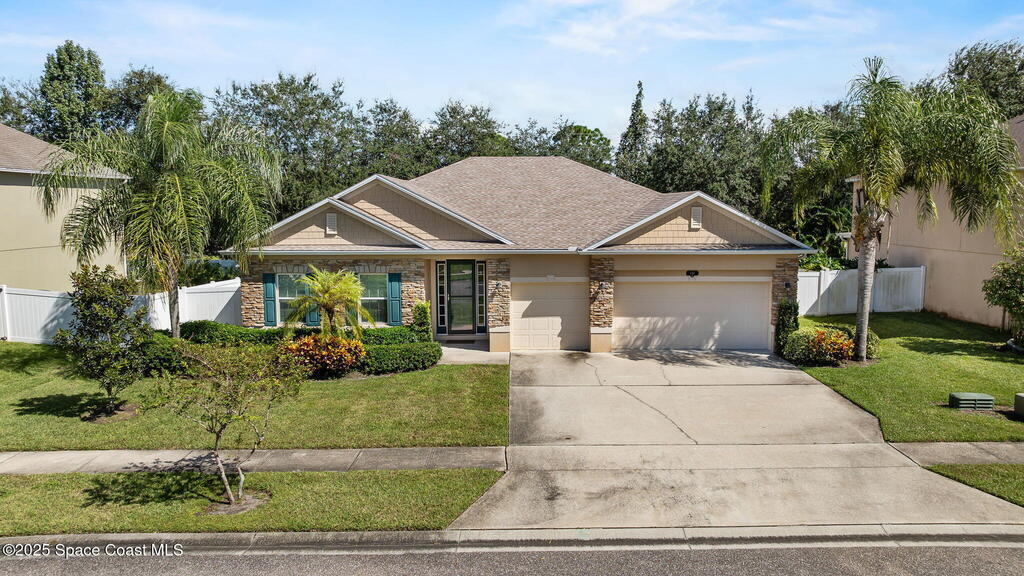 Welcome to Arbor Woods in Titusville! This 4-bedroom, 3-bath home w/ 3-car garage offers just over 2, 600 sq ft & BRAND NEW ROOF for peace of mind. Seller offering $5, 000 toward buyer's closing costs/rate buy down! You'll love the stacked stone exterior, decorative shutters & mature landscaping that give this home great curb appeal. Inside features an open floor plan w/high ceilings, natural light & space to entertain. The kitchen includes granite counters, 42-inch cabinets, double wall oven, electric cooktop, two sinks & plenty of storage. A separate dining room can double as a pool or game room. The primary suite offers a soaking tub, shower, dual sinks & walk-in closet. Front Guest suite w/private bath & 2 addtl Guest bedrooms w/Cabana bath. Enjoy a large laundry room, fenced yard & covered patio. Close to NASA, SpaceX, Blue Origin, beaches & shopping! Live in the heart of Space space coast! Plus, $5, 000 lender credit & free appraisal when using preferred lender!*(w/accepted offer)
