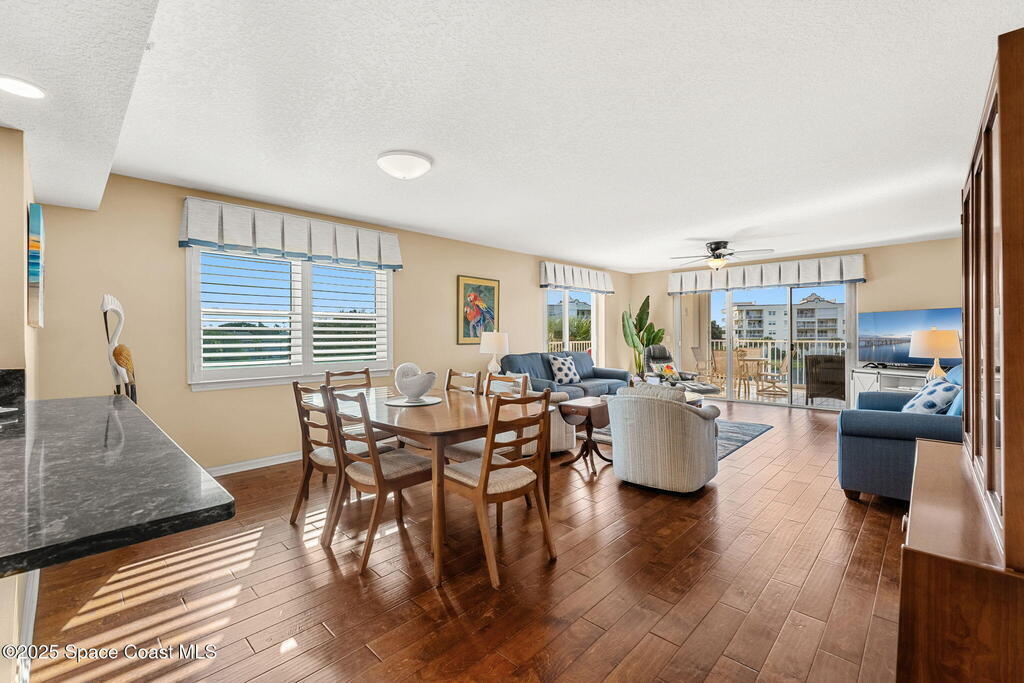 Premium corner unit offering the best location & view in Solana Lake with no neighboring building to block your view. Enjoy sweeping views of the lake, resort-style pool, & open sky from your expansive wraparound balcony. Thoughtfully enhanced over the past few years, this beautifully maintained condo features impact doors in the office & breakfast area, impact windows in both bedrooms & dining room, & a new shutter system around the patio. Wood flooring extends through the living areas, office, & bedrooms, while the kitchen & baths showcase updated counters & tile flooring. Additional updates include a new microwave & plantation shutters throughout (2024), plus a new A/C installed in 2025; the second unit, installed in 2017, remains under warranty for two more years. The open layout connects the kitchen, dining, & living spaces, creating a bright coastal feel. The primary suite has views of the balcony & includes a large walk-in closet, garden tub, & separate shower.