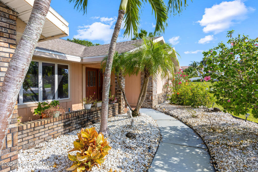 WELCOME TO COASTAL ELEGANCE WHERE OCEAN AND RIVER MEET IN PERFECT HARMONY IN THE EXCLUSIVE RIVER WALK COMMUNITY. This property offers deeded key entry only beach access and includes a rinse station! As the first home in the community, the beach is a very short distance and your dock on the river is a block away--ideal for launching kayaks, paddleboards, or enjoying sunset views over the water. Inside you will find fantastic views of the pool with a serene waterfall. Enjoy your privacy with a split bedroom layout. The primary bedroom is beyond large and a must have!! Relax on your private patio surrounded by lush tropical landscaping. This is your opportunity to live in this prestigious neighborhood in Melbourne Beach.