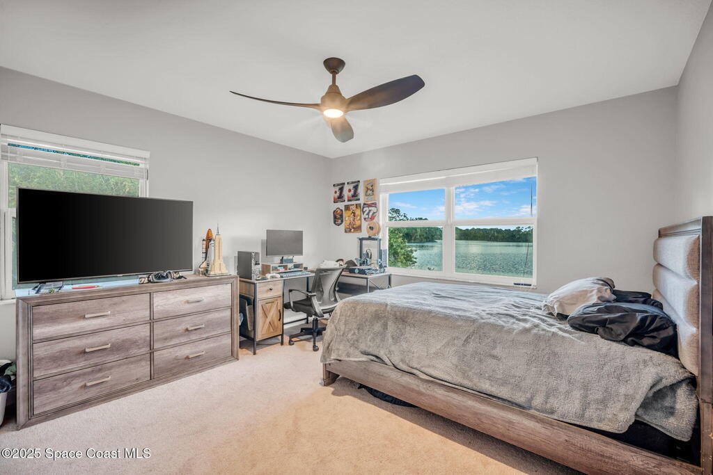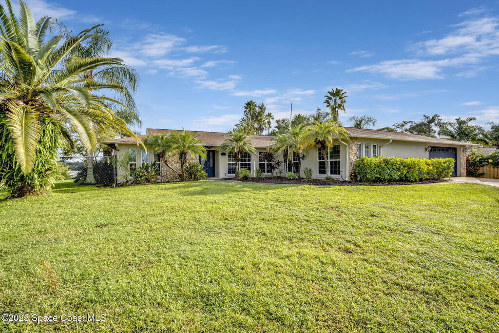 Rare Opportunity to Live on the Largest Lake in Port St. John! Enjoy stunning lakefront views from the kitchen, bonus room, and bedrooms - including the primary suite. This concrete block home offers nearly 2, 600 sq ft of living space, on .40 acre corner lot at end of street. No HOA - Bring your Boats & RVs! The split floor plan provides privacy, primary suite located on the opposite side of house. Roof Only 6 y/o (Oct 2019) & Newer Double-Insulated Vinyl Windows, providing energy efficiency & sound reduction. Brand-New 2025 Kitchen Appliances. Modern Upgrades in 2023 include tile plank flooring, new interior doors, recessed lighting, fresh paint, crown molding, baseboards, and window sills. All main living areas have tile flooring. Indoor laundry, a large Christmas Tree closet, and a built-in speaker system throughout the home and garage. Covered back porch with hot-tub hookups & a workshop (powered & air-conditioned). The perfect blend of space, upgrades, and waterfront views!