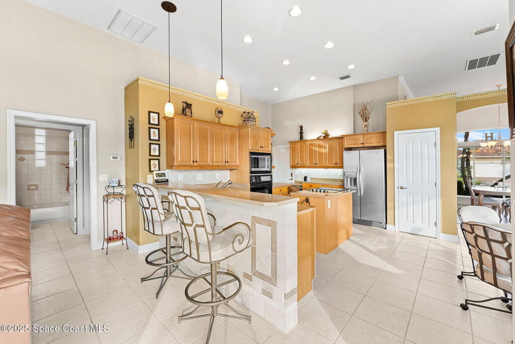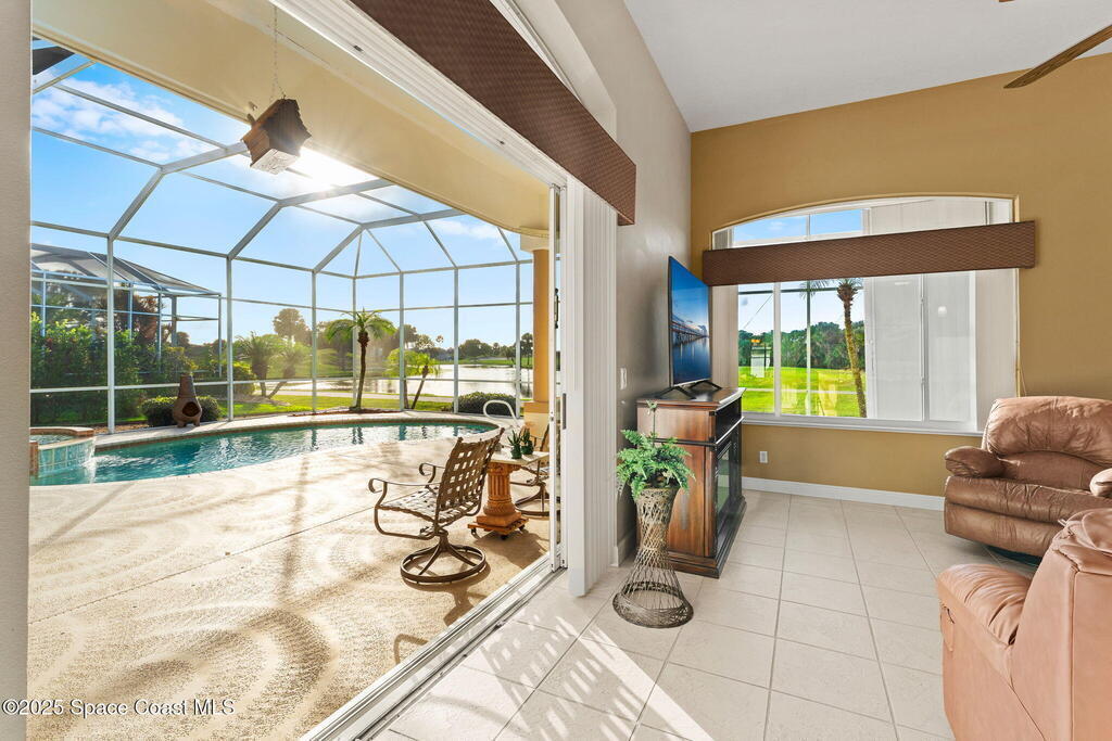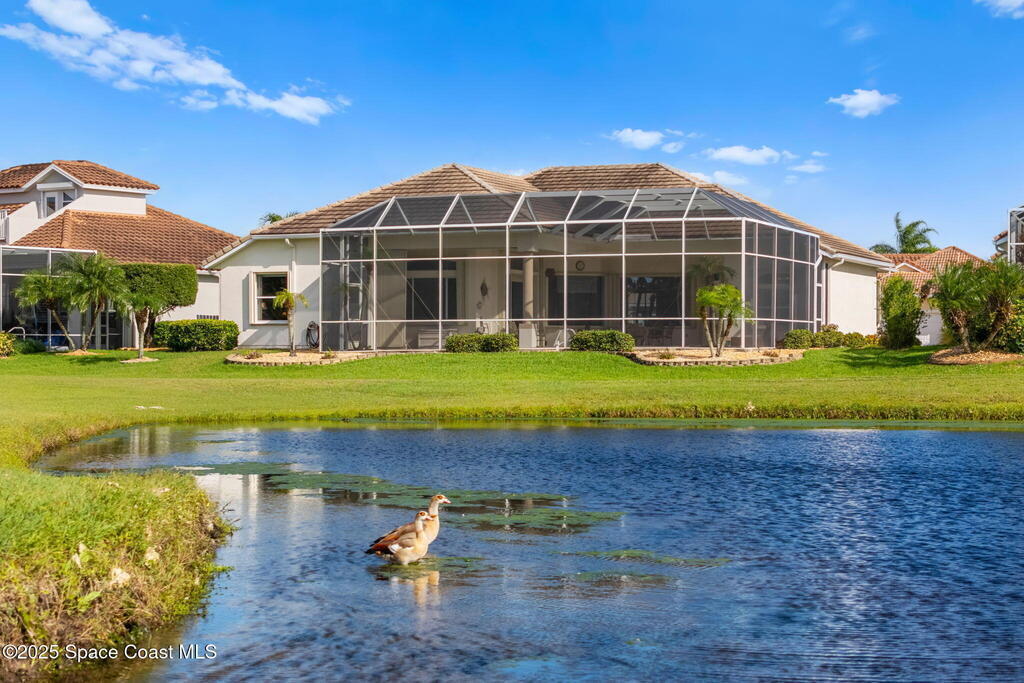 Discover resort-style living in Viera East Golf Club with this beautiful 3-bedroom, 2.5-bath single-family home offering 2, 178 sq. ft. of comfortable and functional living space. Built with durable concrete block construction and featuring a BRAND-NEW tile roof, 2021 Water Heater & 2015 HVAC, this home combines quality and peace of mind.Step inside to a split floor plan designed for both privacy and entertaining. The home features formal living and dining rooms for gatherings, along with a spacious kitchen showcasing granite countertops, ample cabinetry, and views of the pool and golf course. The primary suite offers a relaxing retreat with direct access to the screened patio and a large walk-in shower.Outside, enjoy true Florida living on the screened lanai with a sparkling pool and spa, overlooking serene golf course and water views; the perfect backdrop for morning coffee or evening sunsets.