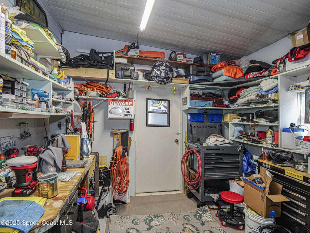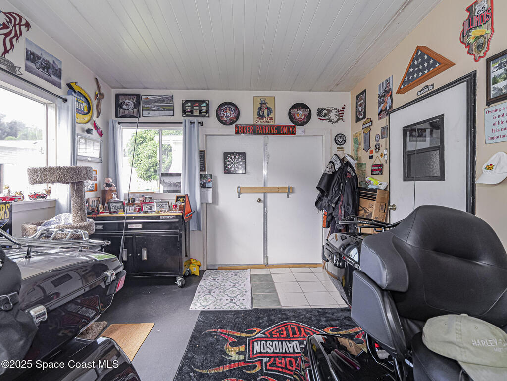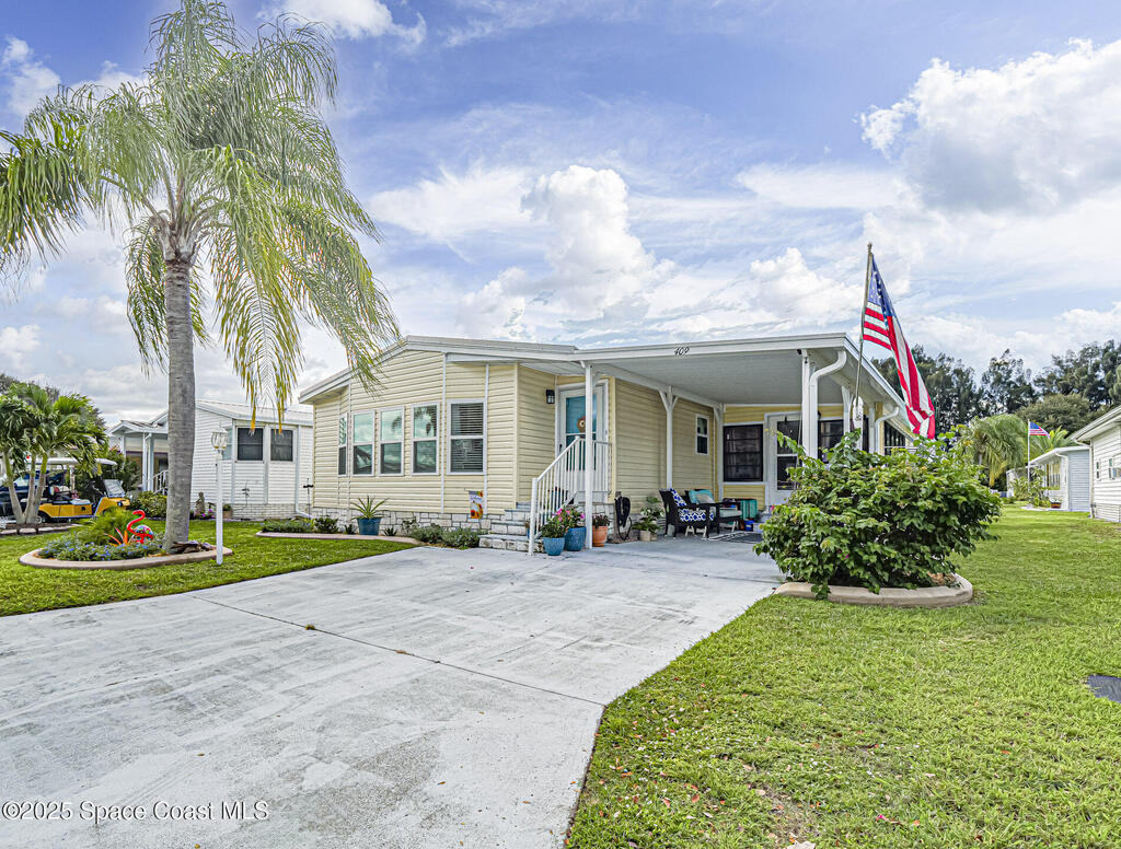 So many inclusions in this well updated and large 2/2 home with extra workshop and side porch. Coastal nuances throughout this immaculate ranch home with volume ceilings. Newer siding, newer metal roof and newer impact windows. Inside, newer blinds, Luxury vinyl flooring in LR/DR area, and modern baths. Stainless steel appliances in center island kitchen. Newe washer and dryer. Newer landscaping. Enjoy living room, dining room, enclosed porch, workshop and bonus 19X12 grade level retreat with double doors. Currently housing 2 oversized motorcycles. No age restriction, great activities, clubhouse and pool.