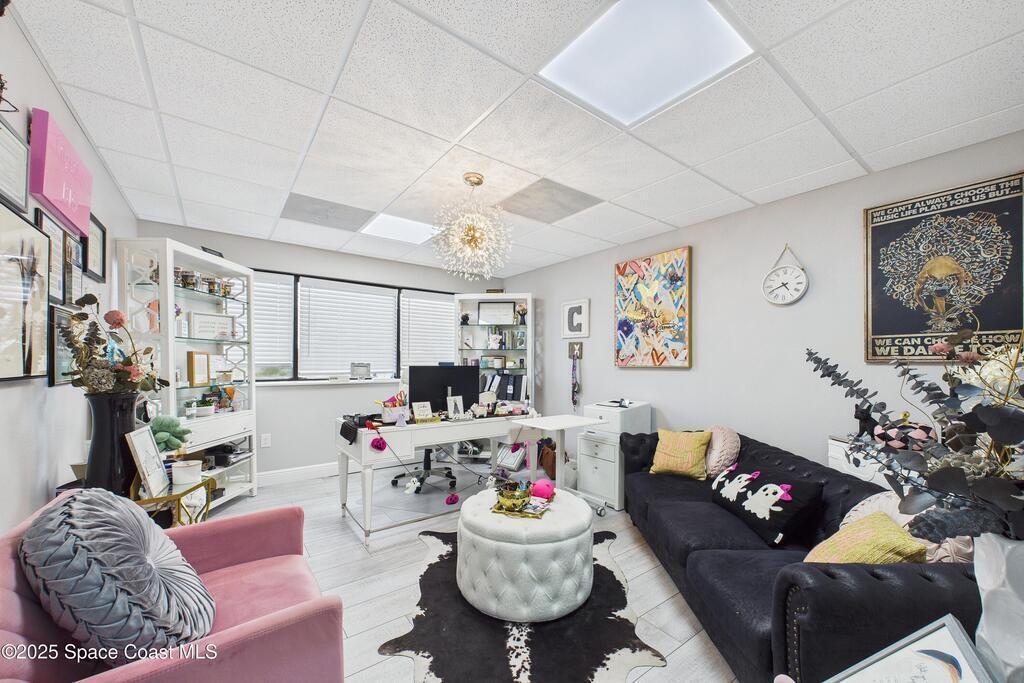 Two second floor units #209 (890 sqft) & #210 (949 sqft) (totaling 1839 sq ft). One interior door connects both units that can be filled in to create two separate units if desired. Plenty of lighted parking, good sign locations, easy access directly off the Pineda Causeway and Wickham Road. The unit offers a reception area, eight (8) private offices, breakroom and two (2) restrooms.