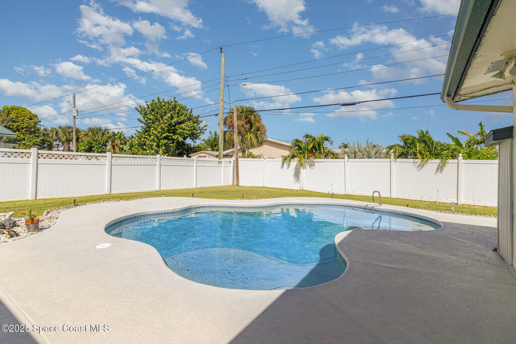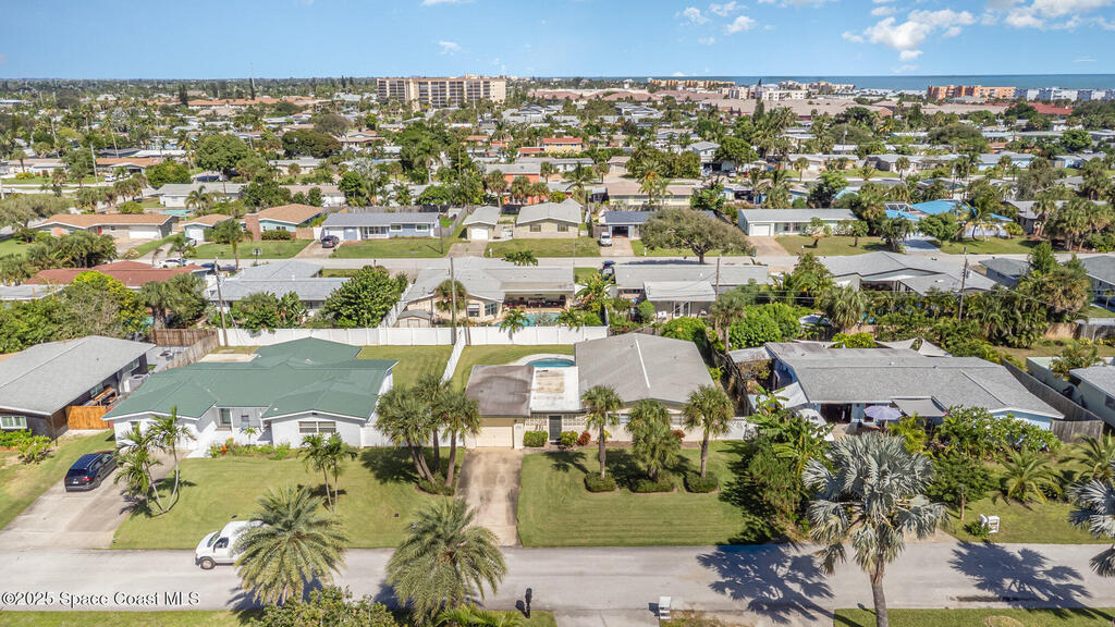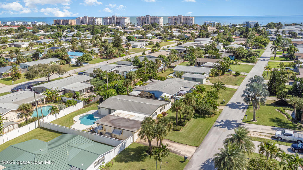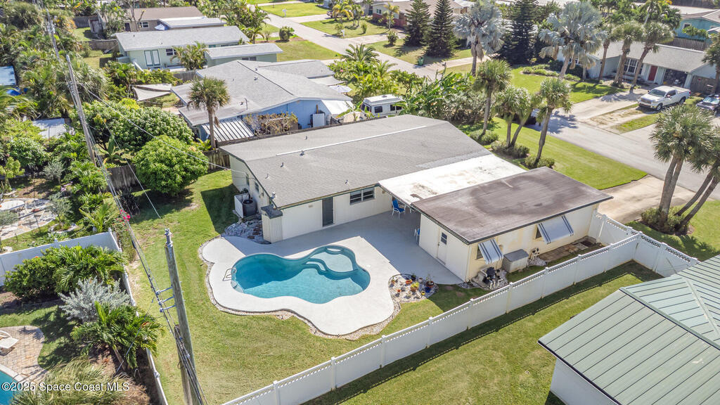 Bright & Cheery Retro Beach Home!You'll fall in love with this charming, retro-style beach home -- the perfect size for retirees or first-time buyers looking to embrace the relaxed coastal lifestyle. Just a short walk to the beach and close to the river, this home offers the best of both worlds!Enjoy refreshing ocean breezes from your covered lanai and spend sunny days lounging by the beautiful pool. Inside, you'll find classic terrazzo floors (no carpet!) and a well-maintained, move-in-ready interior that's full of character and warmth. The lush, manicured grounds complete your private slice of paradise -- with all the conveniences you need just moments away.