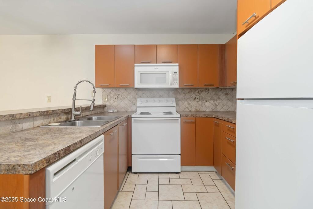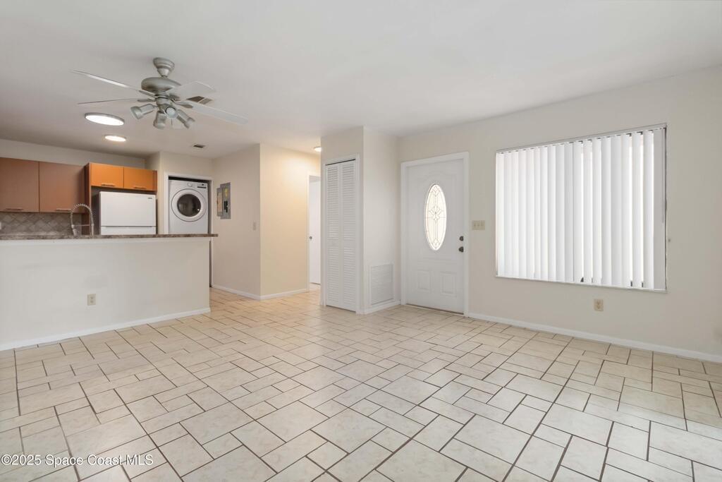 Carefree living awaits in this 2-bedroom, 2-bath townhouse located in the desirable Oakwood Villas community. The open living and dining area offers a welcoming flow, and the fully equipped kitchen includes a breakfast bar and convenient laundry space with stackable washer and dryer. The split floor plan provides privacy, and both full baths have been nicely updated. Tile flooring throughout the living areas and laminate plank flooring in the bedrooms. Enjoy the private courtyard--perfect for relaxing or entertaining in the Florida sunshine. Community amenities include a sparkling pool, playground, tennis courts, and barbecue area. Affordable living in a great location!
