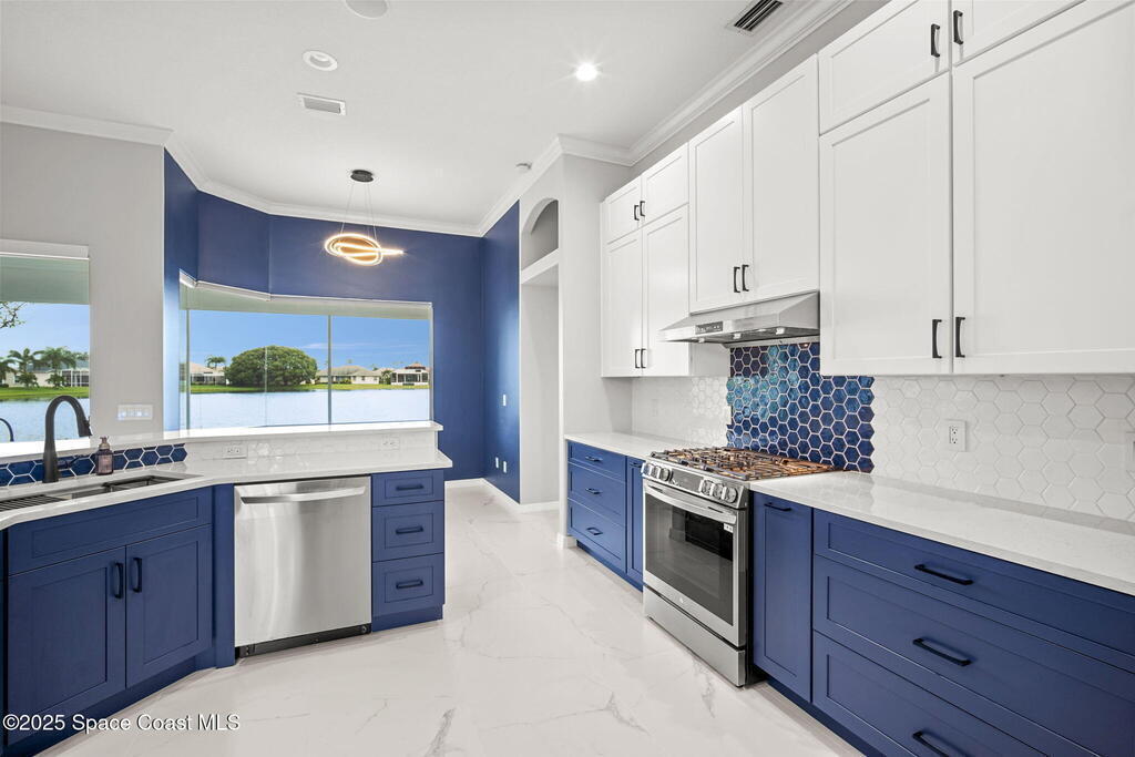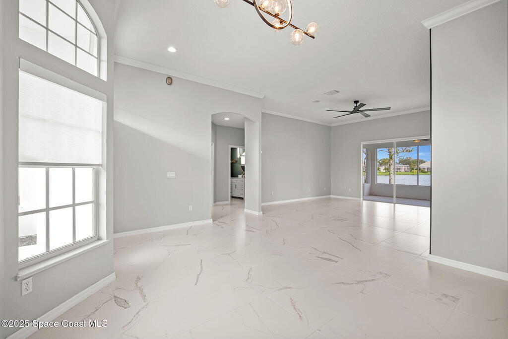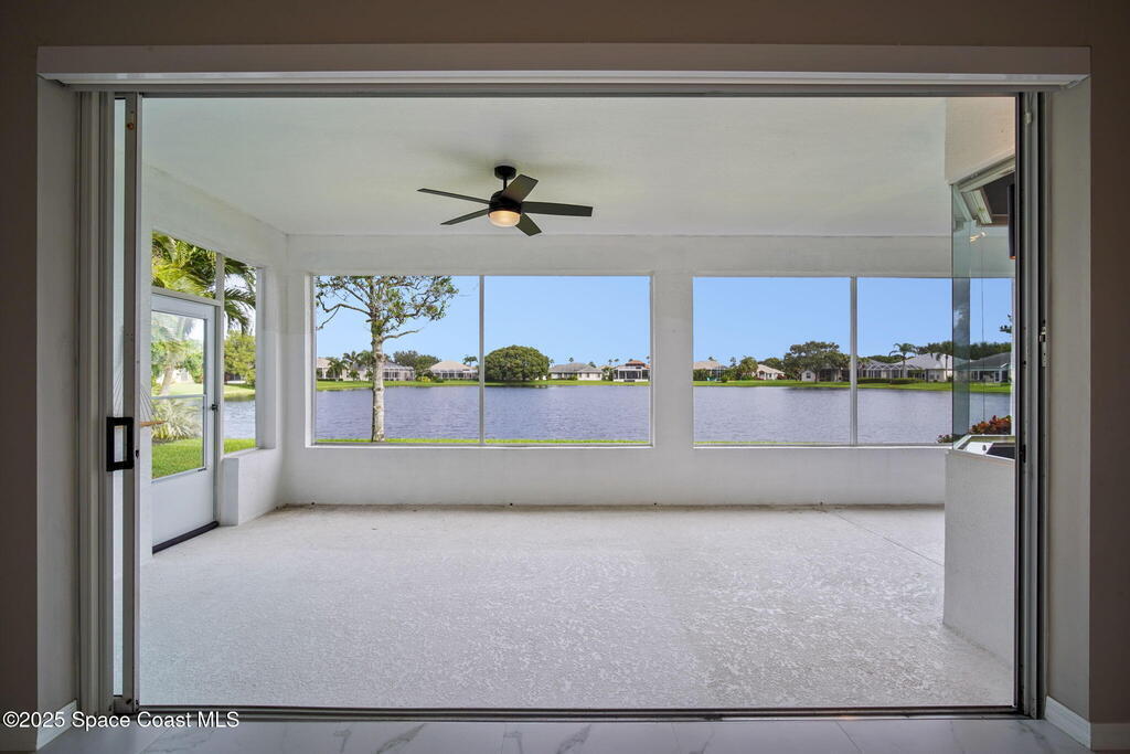 Completely Remodeled Waterfront Home in Viera East Golf Community! Waterfront views from nearly every room. Solid concrete block home with over 1, 800 sq ft of living space. Brand-New Roof (2025). Tile and carpet, motorized shades - remote or app controlled, LED lighting & designer fans all upgraded in 2023. The kitchen 2023 upgrades include soft-close cabinets, all new appliances - featuring a freezer with cube and sphere ice, workstation sink with under-sink filter, dual fuel range. Primary suite features upgraded high-efficiency windows, custom closet, and wall sconces. Wired and installed new interior speaker system and exterior camera wiring completed in 2024. Newer gas on demand hot water heater (2023). Move-in ready with high-end finishes throughout. Viera East Golf Community offers a beautiful golf course, pool, tennis court, and clubhouse with restaurant. Enjoy living in luxury with both this property and community!