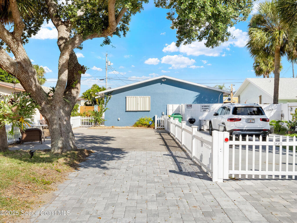 Highly sought after one-story beachside 1/2 duplex just steps to the beach, with NO HOA! Whether you're looking for investment or just your own private getaway, this is it! A stunning kitchen with soft close cabinetry, Curava Seaglass countertops, Stainless Steel appliances, updated baths, tile floors in main areas, accordion hurricane shutters, fully fenced private back yard, 2023 A/C & newer storage shed. Screened in porch to enjoy the breeze and plenty of space to entertain. Great opportunity for someone that would like to live full time or buy it as an investment property for short term or long term rentals. Great location convenient to Beaches, Space Center, Port Canaveral, Cocoa Beach Peir, shops, restaurants, and only 45 minutes to Orlando. Move in ready & furnishings are optional.