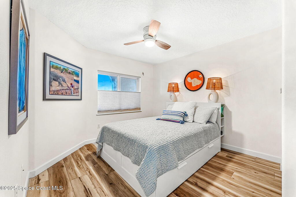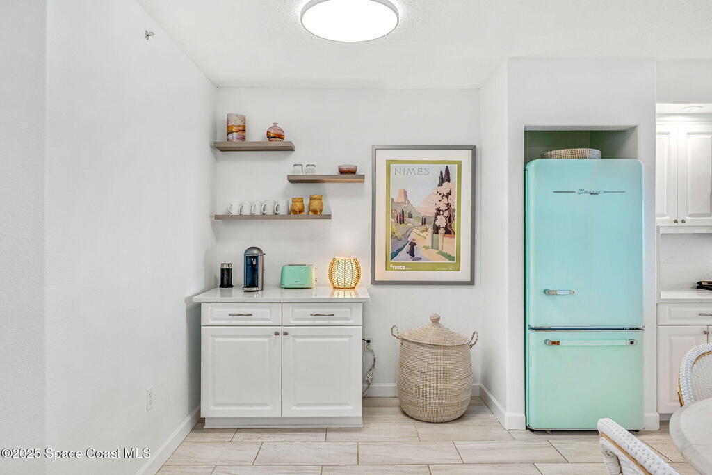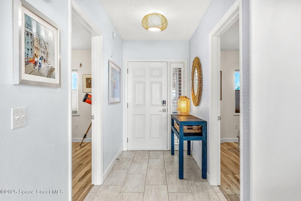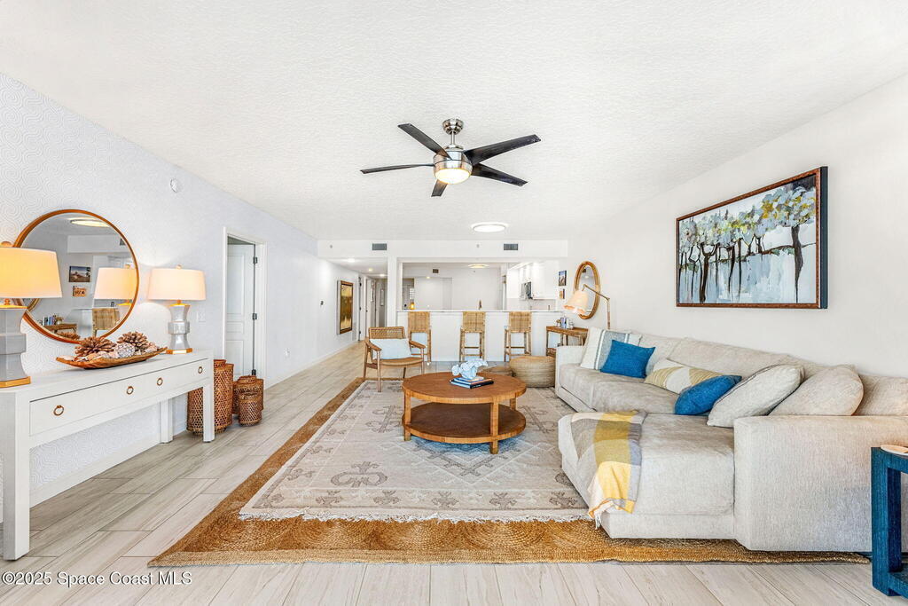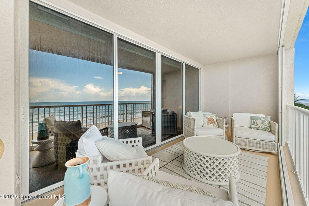 Step into coastal elegance with this fully furnished, 3-bedroom, 2-bath luxury oceanfront condo perfectly perched on the 3rd floor in the heart of Indian Harbour Beach. Enjoy breathtaking ocean views and a seamless blend of style and comfort in one of Brevard's most desirable coastal communities.The home features customized closets in all bedrooms, wood laminate floors, and refreshed bathrooms with new hardware, faucets, and lighting. The kitchen has been beautifully redesigned with quartz countertops, stainless steel appliances, and an open-concept layout created by removing the kitchen/hallway wall--enhancing both space and natural light.Additional upgrades include Hunter Douglas electric shades, new sliders, modern fans, a new washer, and fresh paint accented with Serena & Lily designer wallpaper. A garage storage cage and two assigned parking spaces add convenience to your coastal lifestyle.