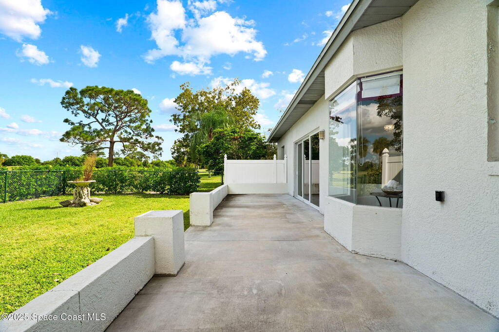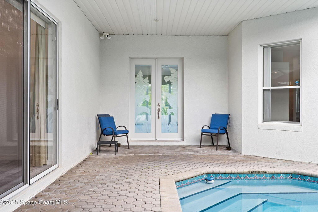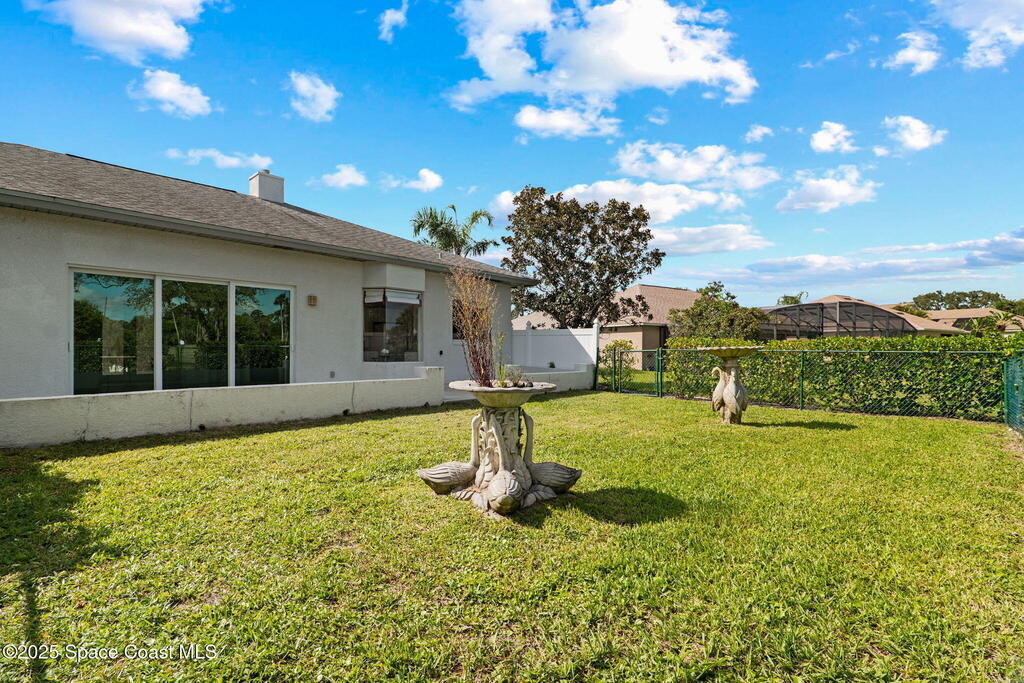 This home is located on a beautiful 18-hole course with a friendly clubhouse that serves food and drinks. Bar also has weekly Texas Hold'em, darts, trivia and other community activities. NO FLOOD INSURANCE IS REQUIRED FOR THIS PROPERTY! In addition, it has an enclosed HEATED POOL that ensures complete privacy. There is also a hot tub that waterfalls into the pool. The pool house can serve as a fourth bedroom with half bath and poolside shower. The master bedroom boasts a spacious bathroom with two walk-in closets. Both living room and kitchen are spacious with window treatments and appliances. There is a two sided gas fireplace facing the living room and dining room. Space coast GC is one of the few golf courses in Florida that allows a fenced back yard. The backyard is fenced in and surrounded by Hibiscus bushes with beautiful unobstructed views. Golf course is currently doing a $4, 000, 000 upgrade. All dog breeds accepted! Cocoa Beach and Port Canaveral are just minutes away