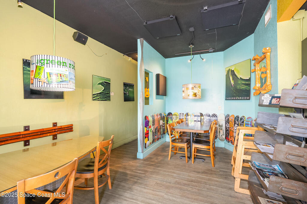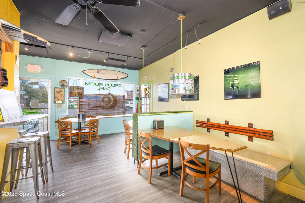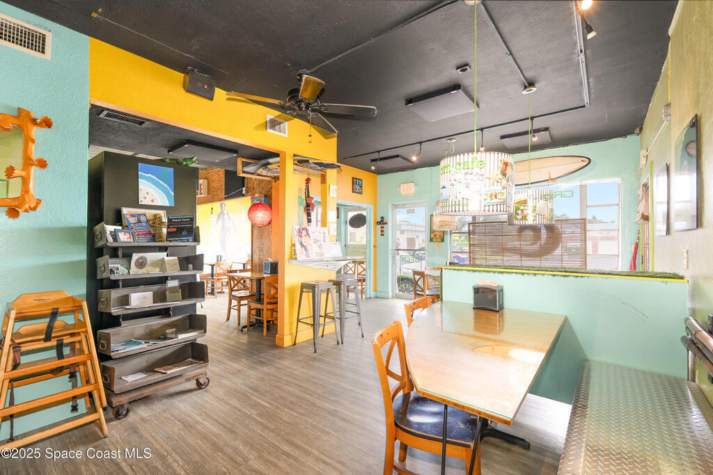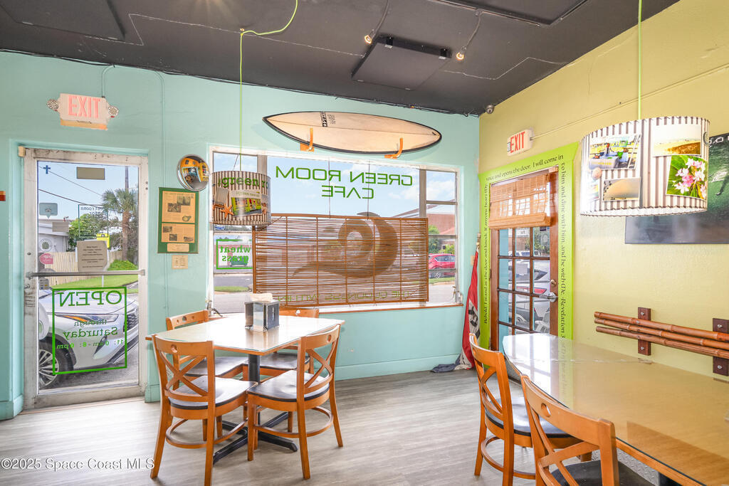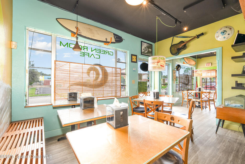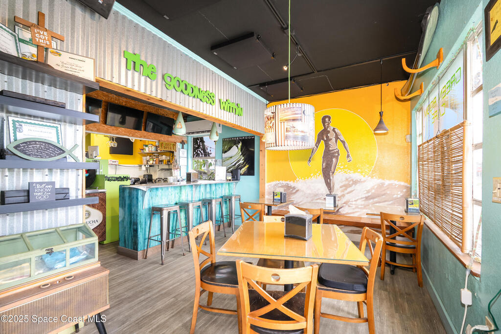 Positioned in the downtown Cocoa Beach redevelopment center in one of Florida's most desirable coastal business corridors, this iconic location offers exceptional visibility, convenience, & plenty of parking. The 1, 133 SF interior is filled with natural light & currently operates as a restaurant; all furniture & equipment convey. A shady outdoor seating area with a convenient pass-through window adds appeal for cafe or casual dining concepts. Ideal for continued use as a restaurant or conversion to other mixed-use commercial options. Located just blocks from the Ocean in the booming Space Coast market, this is an excellent opportunity to jump in on the explosive growth happening in Brevard County. This well maintained commercial condo features a 2019 Roof. Units A & B are also for sale (inquire for details). Business is not for sale.