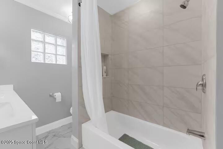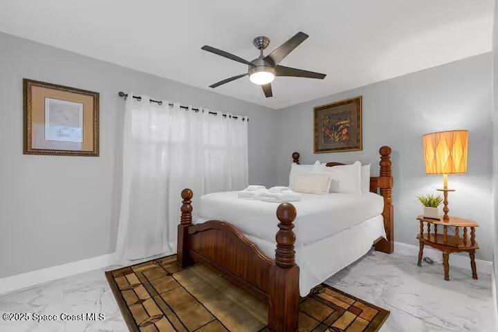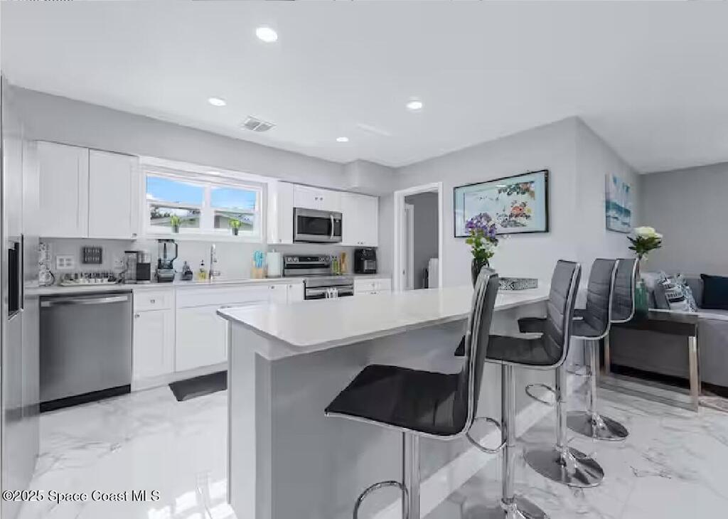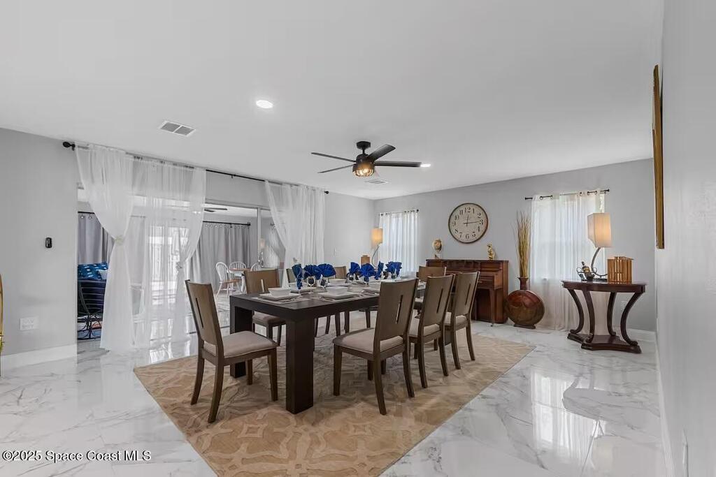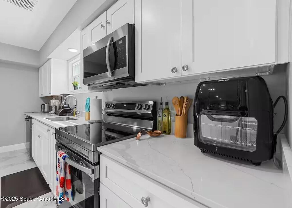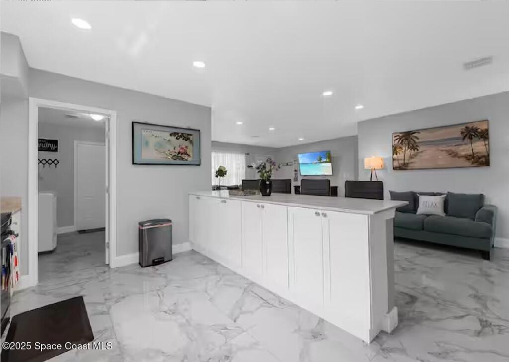 Renovated with modern finishes, this 4-bedroom, 3-bath home offers luxury and comfort with a spacious open floor plan. Built with solid poured concrete construction, this .31-acre property boasts a long driveway and a side-entry garage.Upgrades include a 2022 roof, new windows, stainless-steel appliances, all interiors, a new garage door, and oversized (30x30) floor tiles throughout, Solar panel system. 2 master suites! Enjoy the Florida room with sliding glass doors opening to the huge backyard.Nestled in a quiet neighborhood, yet close to everything! Zoned for short-term rentals and currently operating as an Airbnb. Furniture is optional. Near downtown Melbourne, minutes to FIT, beach, river, restaurants, and the mall.