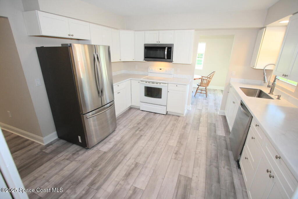 MOTIVATED SELLER: Beautifully Updated In The Highlands: New Roof & Gutters, & Converted Car Port To Garage in 2022, with Hurricane Garage Door, New Siding & Plumbing, New HVAC System & All Duct Work throughout, Kitchen Remodeled & all new flooring in 2023, Master Bath Remodeled in 2024, Tankless Hot Water Heater, Updated Electrical to 200 Amp, extra den/office/3rd bedroom, Separate Laundry Room In Garage, and just minutes to the boat launches on the Indian River, Beaches, Restaurants, & shopping.