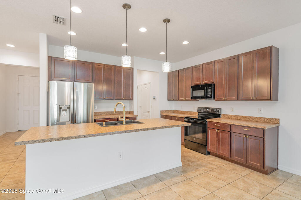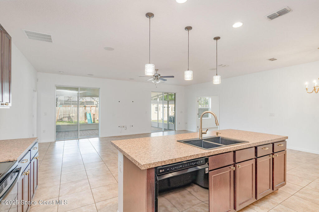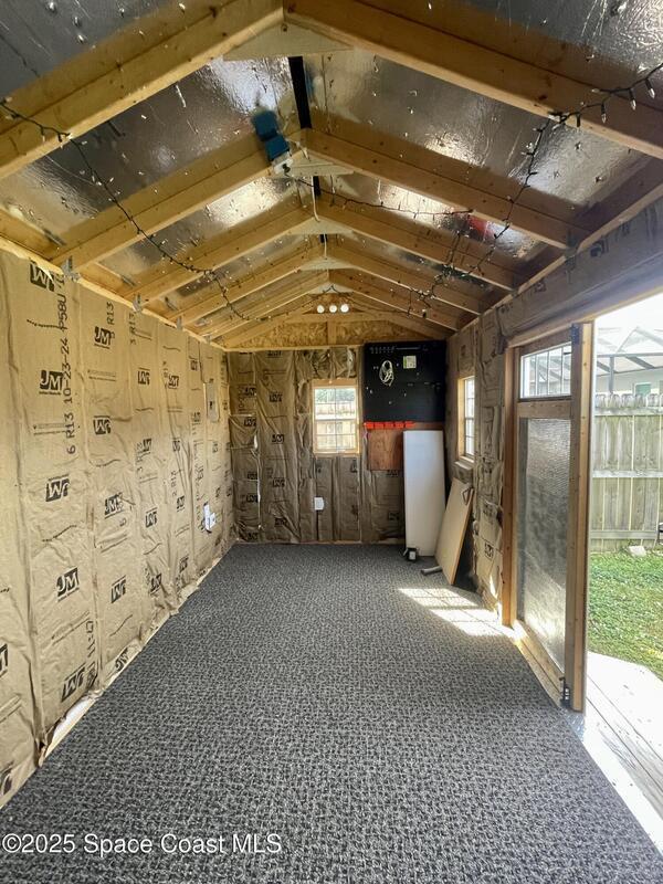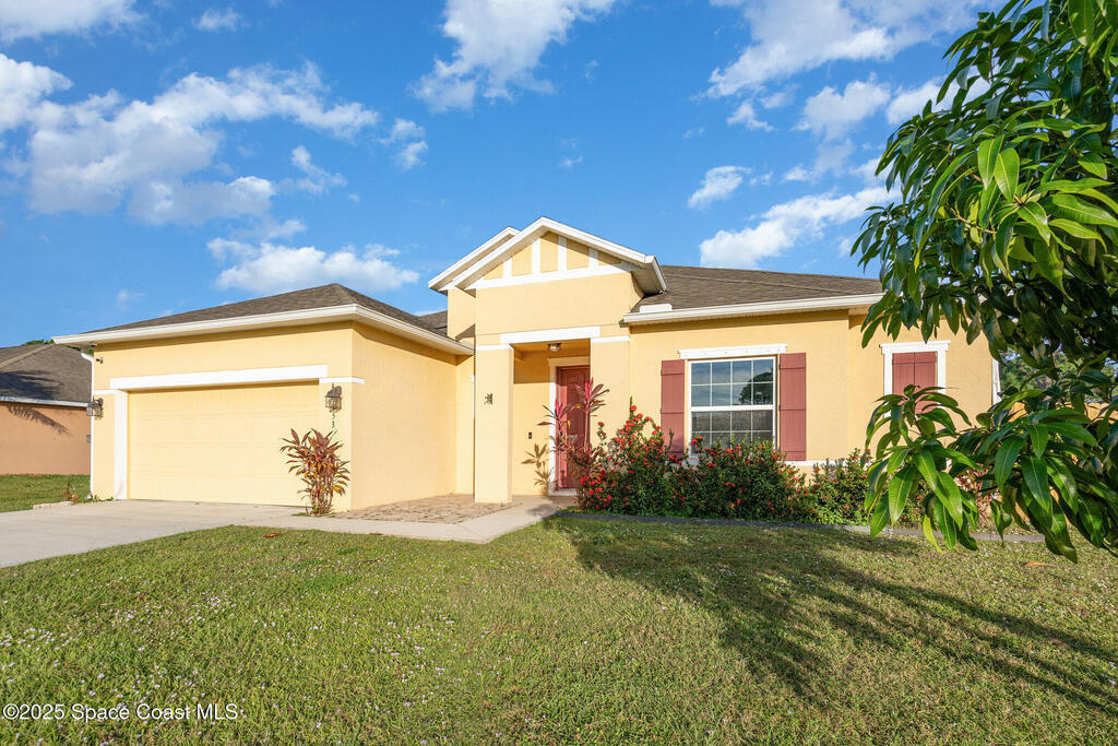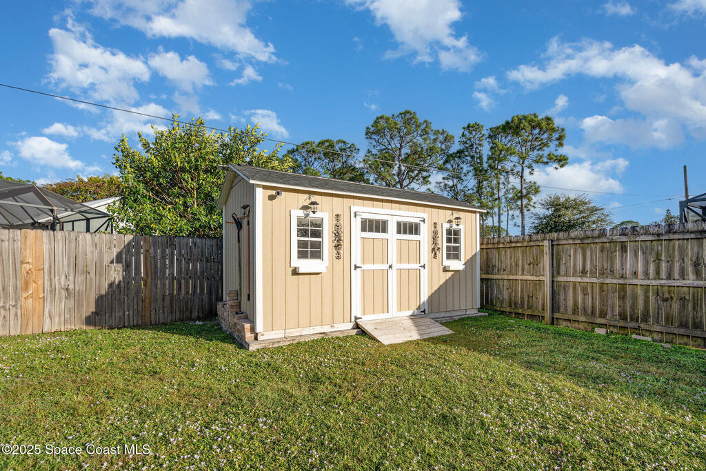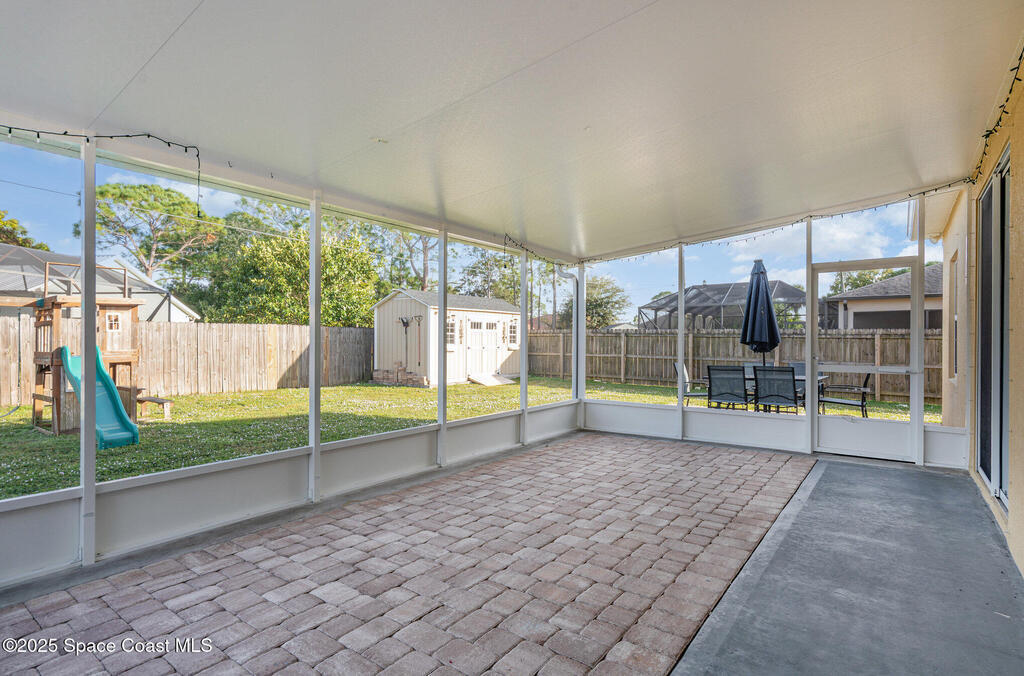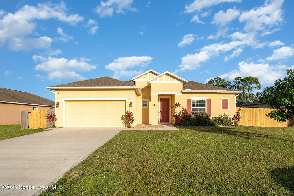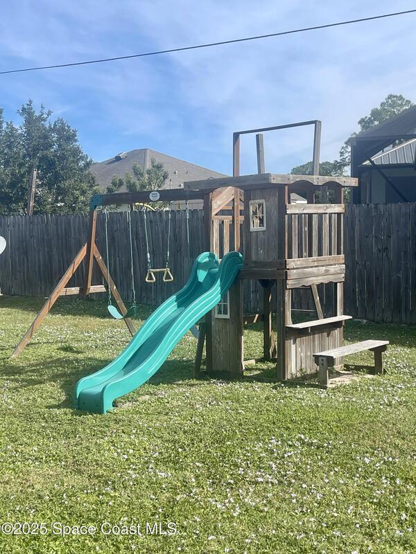 NEW YEAR, NEW HOME, NEW PRICE! Welcome home to this inviting 3-bed, 2-bath home with a versatile flex room perfect for an office or dining space. Built in 2017, this bright open-concept layout features tile in main areas, carpet in bedrooms, an island kitchen with upgraded appliances, pantry shelving, and 9-ft ceilings. Enjoy a large screened patio, fully fenced yard with playground, and paid-off solar. The powered shed on concrete footers adds storage and workspace. Fresh paint, hurricane shutters, 2-car garage, and upgraded features. Close to schools, shopping, and I-95 -- ready for family living and entertaining! CITY WATER & SEWER! CURRENTLY NO ELECTRIC BILL!