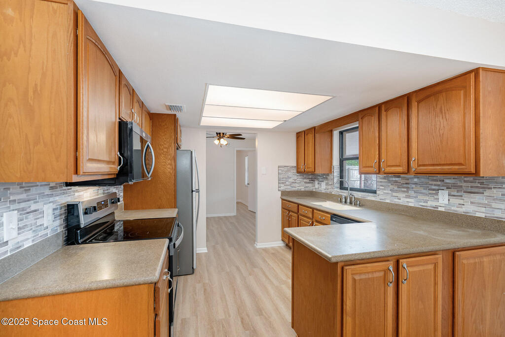 Beautiful 3-bedroom, 2-bath pool home with 2-car garage in a highly desirable neighborhood--NO HOA! Enjoy great curb appeal and a fresh look with new interior and exterior paint. Inside, you'll love the brand-new stainless steel appliances, new water heater, and luxury vinyl plank flooring throughout. The split floor plan offers privacy, with a spacious master suite featuring a walk-in closet and updated bath. The guest bath includes a tub and shower, both bathrooms tastefully renovated. Step outside to a large screened-in patio overlooking your fenced backyard and sparkling pool with a new motor and timer--perfect for relaxing or entertaining. Conveniently located near shopping, dining, and less than 20 minutes to the beach. Move-in ready and waiting for you!