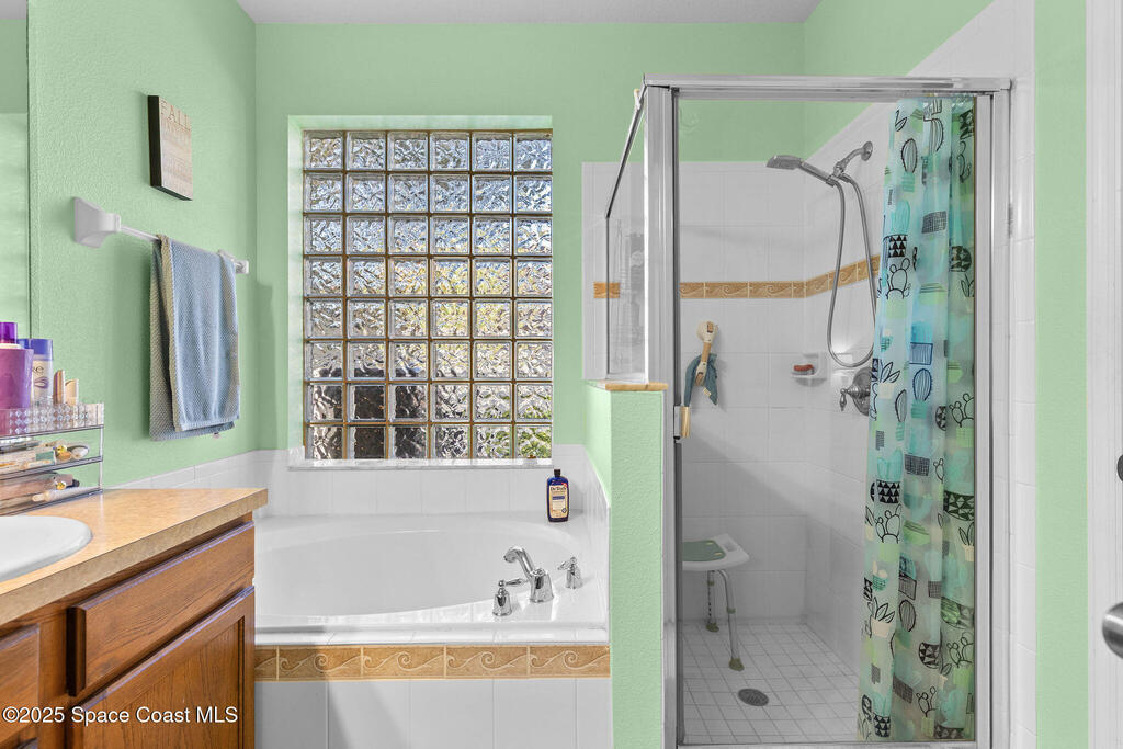 Breakfast Bar, Ceiling Fan(s), Eat-in Kitchen, Kitchen Island, Open Floorplan, Primary Bathroom -Tub with Separate Shower, Primary Downstairs, Walk-In Closet(s)