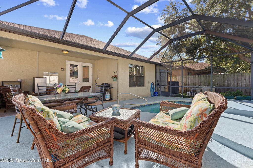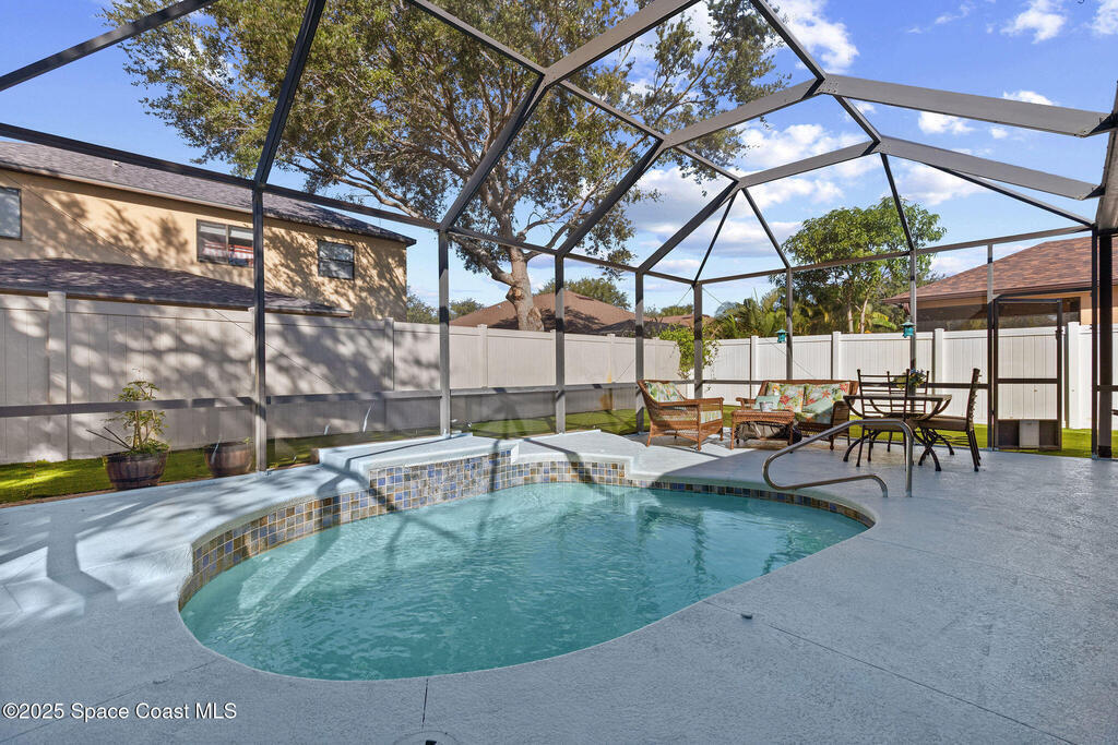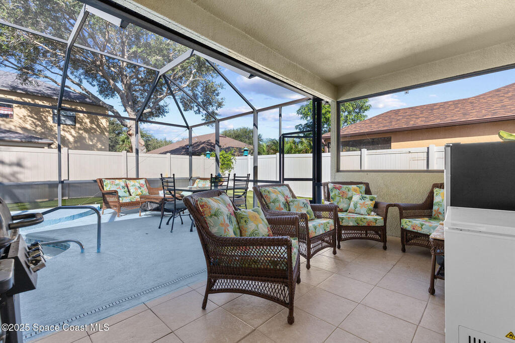 Welcome to 4146 Aiken Lane, a home that feels comfortable, open, and ready to be enjoyed from day one. With a brand-new roof just installed, this 3-bedroom, 2-bath home plus an office or flex space offers 1, 706 sq ft designed for real life. From the moment you walk in, high ceilings and an open floor plan create a bright, airy feel that makes the home feel larger than the numbers suggest. The kitchen sits at the heart of the home, overlooking the living area with a large island that naturally becomes the gathering spot for meals, conversations, and everyday moments. Tile flooring throughout the main living spaces means no carpet and easy upkeep. The primary suite feels like a true retreat, featuring a walk-in closet, dual vanities, a garden soaking tub, and a separate walk-in shower. Step outside to the screened-in, heated pool--perfect for relaxing evenings, weekend entertaining, or cooling off any time of year. A low-maintenance yard gives you more time to enjoy the home.