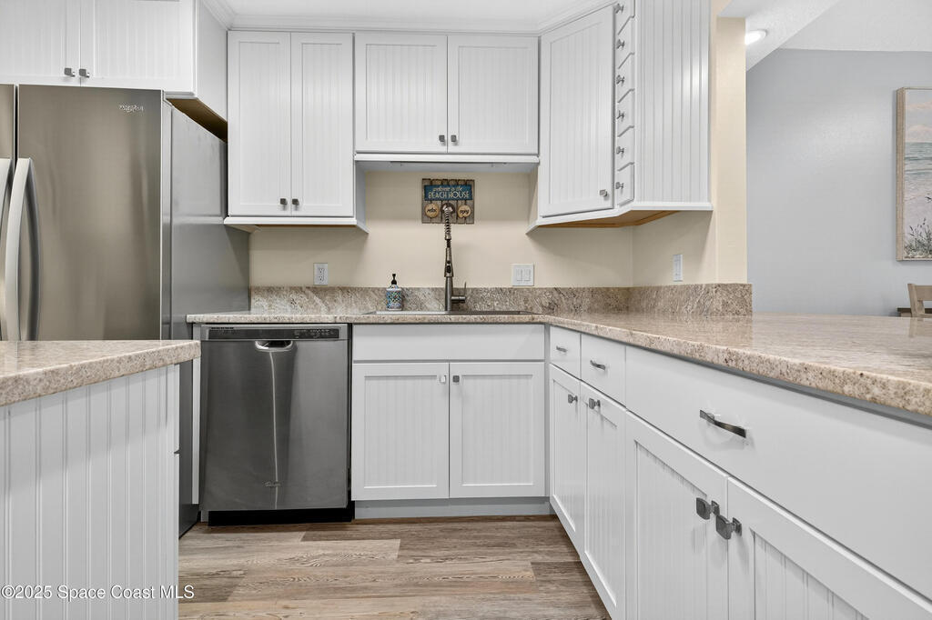 Beachside living at its finest! Also listed for sale, MLS #1056518 This beautifully updated, move-in-ready condo, with oceanfront living is ready to move in! Awaken to spectacular sunrises in this fully renovated 2-bedroom, 2-bath condo in Cocoa Beach! Situated in the central heart of the island, this modern, spacious end unit has Ocean views on a wonderful wrap-around patio with a storage shed protected by wrap around hurricane shutters. (New in 2023). Watch rockets galore from this luxury condo patio. Wonderful beach walks, vibrant sunrises and a private beach access await you! Ground floor. No elevator needed, Low condo dues! The complex has recently undergone concrete restoration. This is a highly maintained complex ensuring long-term beauty and sustainability.