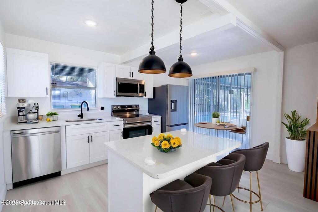 1810 Dixon Blvd | Cocoa, Florida 32922 This property just underwent a full renovation, including updated bathrooms, new flooring throughout, interior and exterior paint, brand-new high-grade kitchen cabinets with quartz countertops, a newly resurfaced exterior porch with new flooring, and an upgraded pool deck. The home also features new PVC re-plumbing and a metal roof. The layout offers comfortable everyday living with an open living/dining concept, functional kitchen workspace, and private bedroom and bathroom areas that provide flexibility for guests. Additional highlights include an interior laundry area, standard mechanical systems, and an in-ground pool perfect for Florida living. The level lot includes a fenced yard, covered patio for outdoor seating or dining, and driveway plus carport parking for multiple vehicles. Conveniently located just minutes from Cocoa Village, major roadways, schools, shopping, and the Space Coast corridor. 4 point alvlb and wind mitigation