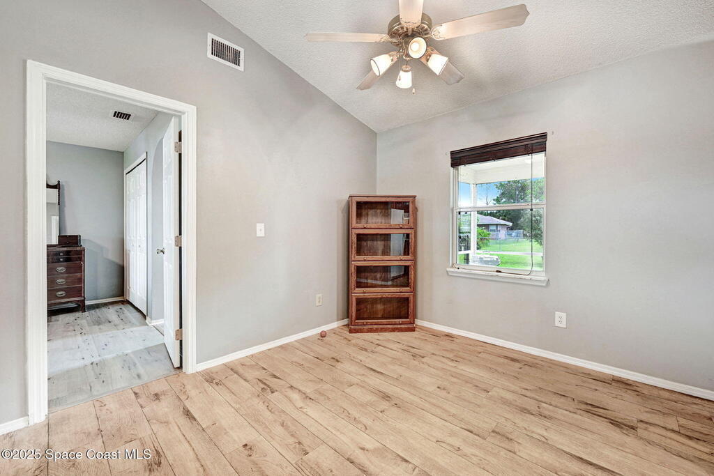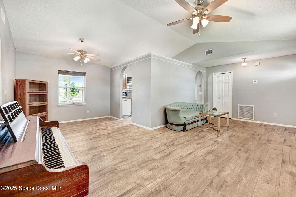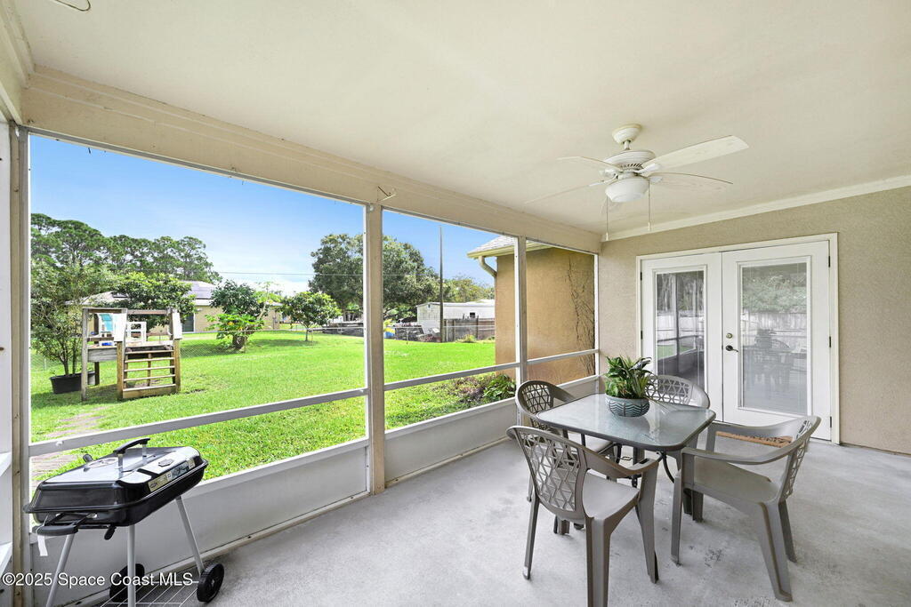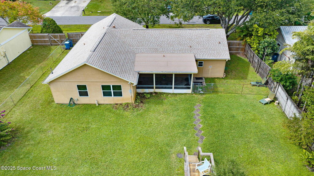 This charming single-family split plan style home boasts 3 bedrooms, 2 bathrooms, vaulted ceilings, and a spacious 2-car garage. With 1412 sq ft of living space, there is plenty of room for your family to spread out and relax. This quiet established neighborhood provides a peaceful retreat. Conveniently located close to shopping, dining, I95 and other main roads are within 15 min. away, making an easy commute to the beach, Orlando or anywhere you desire to go. The roof was recently replaced in 2023, ensuring years of worry-free living. The AC unit was also replaced in 2022, keeping you cool and comfortable year-round. Outside there is a screened porch and a fenced back yard. The washer and dryer has it own room on the way to the garage, and will convey with the home. Hurricane panels are included for added peace of mind during storm season. The septic system has been recently checked and cleaned. Don't miss out on this fantastic opportunity to own this beautiful home in NW Palm Bay.