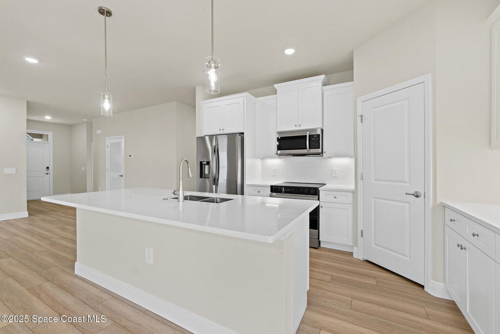 City Water | Unbeatable Builder Incentives! Take advantage of Flex Spend Cash, applied toward a 30-year fixed rate as low as 5.49%, buyer closing costs, and prepaids when financing through the builder's preferred lender. This stunning new construction home on city water showcases exceptional craftsmanship with soaring ceilings, a spacious open-concept great room, and a chef-inspired kitchen featuring all-wood shaker cabinets with crown molding, dovetail soft-close drawers and doors, quartz countertops, and a premium Samsung stainless-steel appliance package. Abundant natural light pours in through large windows and sliders leading to the covered lanai. Enjoy luxury vinyl flooring throughout, tile in wet areas (no carpet!), and bathrooms with quartz-top vanities and fully tiled showers--no inserts. If you're searching for superior quality, thoughtful design, and unbeatable value, this is the home for you!