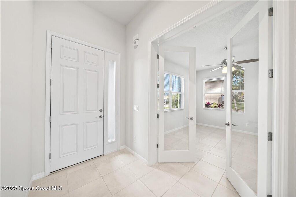 This is the complete Viera West home that checks many boxes: 1. Lot location: a premium homesite that has water views in the rear, and front of the home, which means no houses directly in front of home.2. Space, function, and comfort: The highly desirable Sycamore plan provides plenty of space for your family or guests, over 2800 sqft, primary suite, flex/study are downstairs, 4 more bedrooms upstairs, a total of 3.5 baths. Few can boast about having a climate controlled garage, this garage has it's own mini-split!3. Modern yet practical finishes: All tile flooring downstairs, custom wood staircase, upgraded kitchen & baths, window blinds & clg. fans are a plus! 4. Efficiency and peace of mind. Enjoy lower energy bills from window tint, tankless natural gas water heater. Storm prep is a breeze, with your whole house back-up generator & impact windows upstairs. Pests don't stand a chance here b/c this home has a in-wall pest control system.