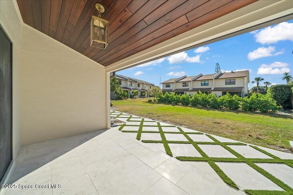 This updated luxury townhome offers sophisticated coastal living in Melbourne Beach's most coveted location. Designed with high-end, curated finishes throughout, the home features two expansive en-suite bedrooms upstairs and a spacious open-concept living area downstairs with a dining space, powder room, laundry, and a chef's kitchen appointed with premium appliances and custom cabinetry. A whole-house water filtration system ensures exceptional water quality, while outdoor living is effortless with a private front courtyard, a screened second-floor balcony capturing ocean glimpses, and a covered rear porch ideal for year-round enjoyment. Cable and high-speed internet are included, and solar panels help offset electrical costs, allowing you to enjoy a low-maintenance lifestyle in a boutique beachside setting. Located directly across from the beach/ocean, this home places you steps from pristine beaches beloved for sunrise strolls, surfing, fishing, rocket launches, and nesting turtles