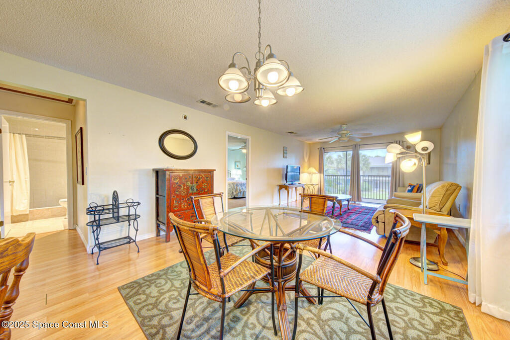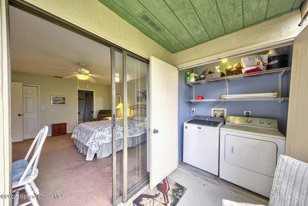 This beautiful condominium boasts the best location in the building, offering unmatched privacy and serene views of the pool from your private screened balcony. The interior features granite countertops, stainless steel appliances, a breakfast bar, and a pantry, making the kitchen both stylish and functional. The spacious master bedroom includes an en-suite bathroom, a walk-in closet, and balcony access via sliding glass doors. The open-concept living and dining area creates a bright and inviting atmosphere, perfect for entertaining or relaxing. Plus, the convenience of an in-unit washer and dryer adds to the ease of living. This resort-style community is full w/ amenities, including tropical grounds, tennis courts, a car wash station, two pools, two clubhouses, and a gazebo on the Banana River--perfect for watching sunsets, dolphins, manatees, and rocket launches! This condo is just a 5-min walk to the beach, a 5-min drive to the Port, and 45 min to the Airport.