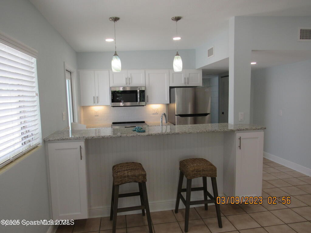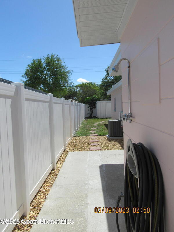 ADORABLE FULLY UPDATED DUPLEX FEATURES STAINLESS STEEL APPLIANCES, CEILING FANS, WASHER/DRYER, TILE AND TERRAZZO FLOORS, CARPORT AND LARGE DRIVEWAY FOR PARKING, PRIVATE PATIO IN BACK WITH SAIL FOR SHADE, OUTSIDE SHOWER. FIRM NO PETS, SHORT WALK TO BEACH, CLOSE TO SHOPPING, LIBRARY, CAPE CANAVERAL REC AREA RENT INCLUDES LAWN AND PEST CONTROL