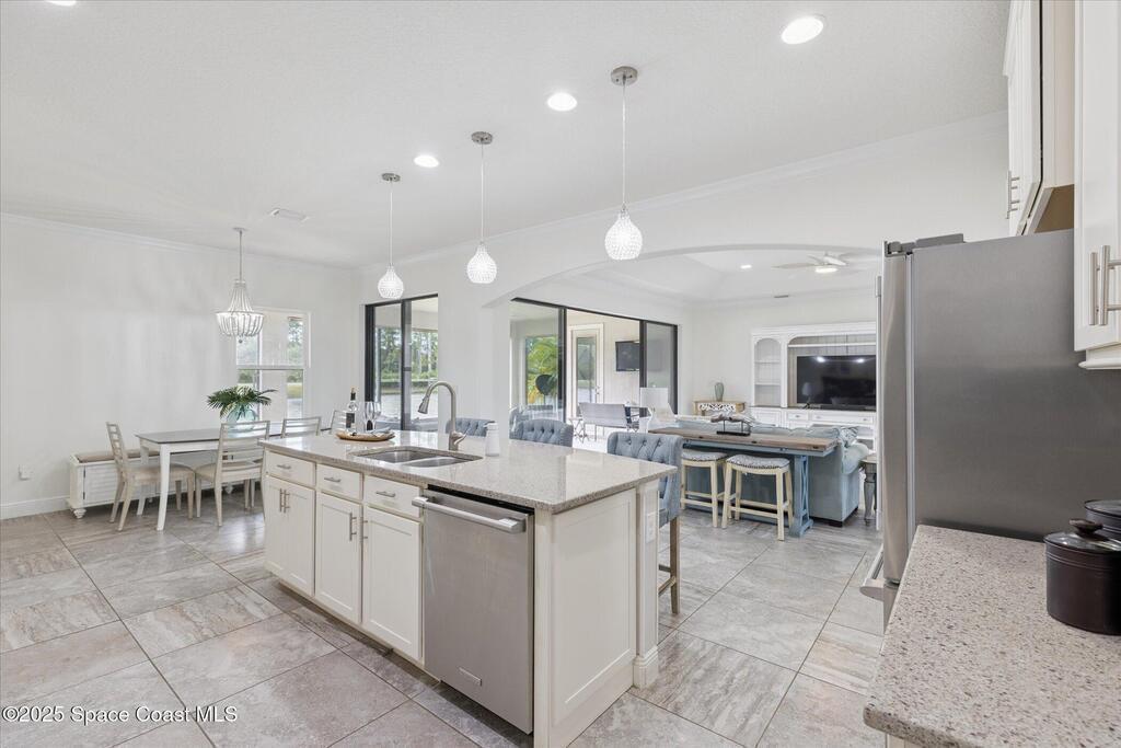 Welcome Home! This luxury design by D.R. Horton combines modern with classic. THE ESTATES at SAWGRASS LAKES Emerald model open floor plan provides large rooms, windows, granite counter tops and backsplash, stainless steel appliances with beautiful 42 inch cabinets, breakfast bar, dining. Stylish tile floor runs through the whole house. His and her walk in closet in primary bedroom, luxurious shower, relaxing soaker tub; granite countertops in all bathrooms. 240 VLT electric car charger installed in garage. Large, screened patio overlooking the splashing fountain in pond creating a serene atmosphere. Ideal living for the whole family. Resort style amenities with upscale clubhouse, gym, tennis and pickle ball court and more. The only private community pool in Brevard with a two story slide, a residence delight, nesting in lushes Florida greenery. Low association fee, onsite office, catering for your needs. Timeless tile roof, A/C, high grade appliances . 2018 built, like new. A must see