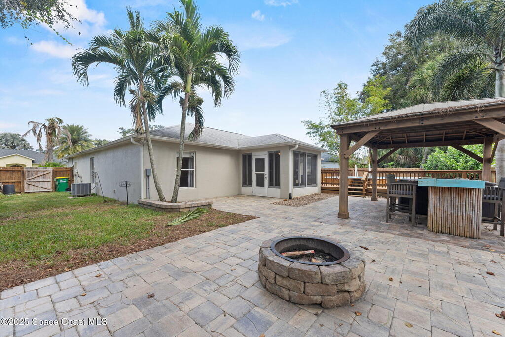 Up to $10, 000 BUYER ASSISTANCE!! There's no place like home--and this one proves it! The backyard is a showstopper featuring a brick paver patio, firepit, gazebo with hot tub & bar, above-ground pool with raised deck, and lush tropical landscaping. Inside, the open floor plan has no carpet, with formal living and dining rooms plus a family room and sun porch that opens into a screened patio. Major updates done: roof 2021, HVAC 2020, pool/deck 2017, fence 2014, hot tub & gazebo 2022, water heater 2025, dishwasher 2024, washer/dryer 2021. Freshly pressure washed and wood re-stained, this home is truly move-in ready! Even the TVs convey! Privacy abounds with fenced yard & no rear neighbors. Located in desirable Cypress Woods--enjoy sidewalks, ponds, and playground with no connecting neighborhoods. Conveniently near I-95, Hwy 50, and US-1, just minutes to shopping, Indian River, Kennedy Space Center, Port Canaveral, and beaches. Paradise found right on the Space Coast!