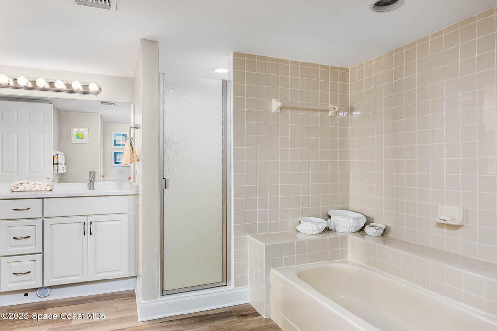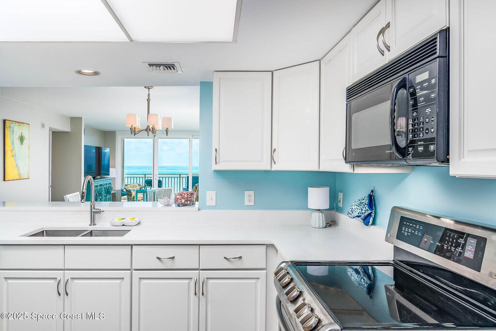 Wake up to the sound of waves & breathtaking views from this stunning 8th-floor oceanfront condo in one of Indialantic's premier buildings. This beautifully updated 2BD/2BA w/small office blends coastal comfort & modern style. Perched high above the shoreline, enjoy sea breezes, spectacular sunrises over the Atlantic & peaceful river sunsets--plus the comfort of living well above humidity & coastal pests. Inside, luxury wood-look vinyl floors flow throughout w/5'' baseboards & soft carpet in BDs. The kitchen shines w/quartz counters, breakfast bar, SS appliances & dual-oven range. Both Baths feature matching quartz surfaces. The spacious primary ste offers a walk-in closet w/custom organizers & sliding doors to the balcony w/endless views. All SIRS inspections complete, 30-yr restoration finished & assessments paid. Move right in & enjoy underground parking, storage, pool, clubhouse & private beach access. The owner's confidence shows--they also purchased the neighboring unit!