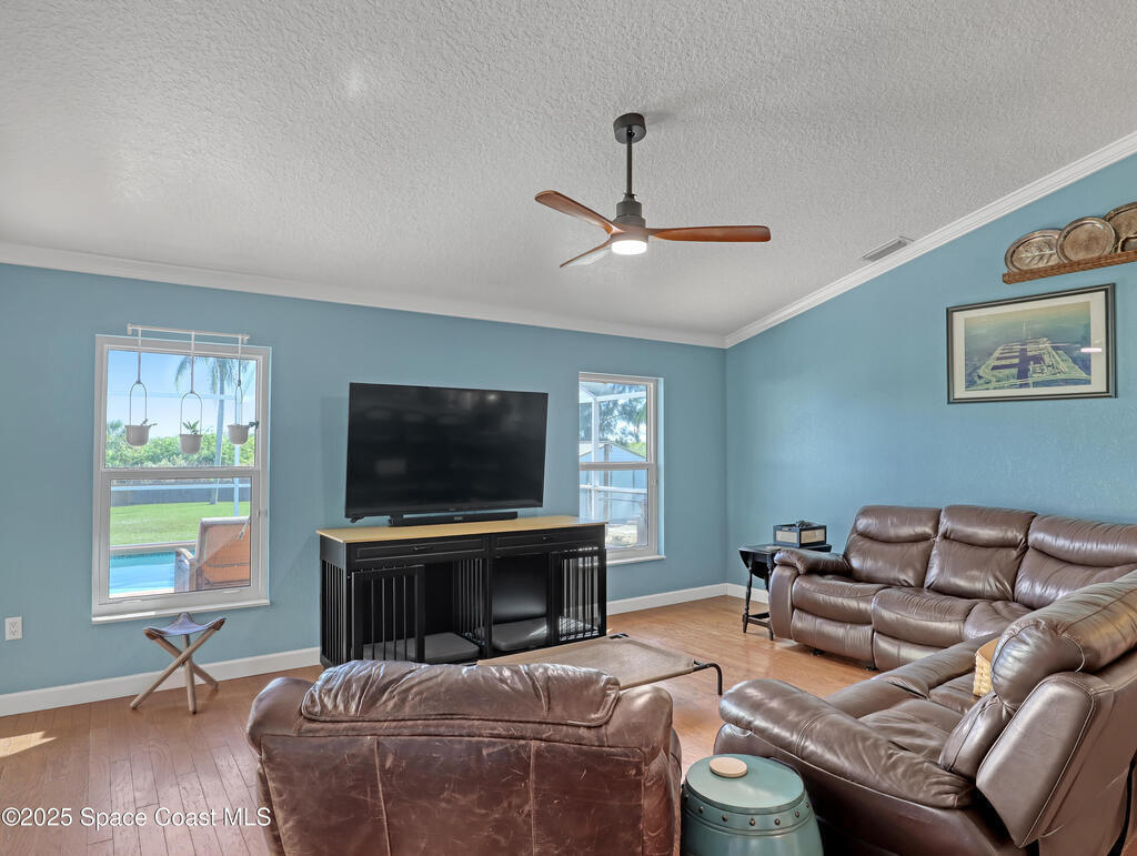 Looking for a home that balances everyday comfort with thoughtful updates? This Merritt Island pool home delivers.Inside feels both stylish and practical with granite counters, stainless steel appliances, and a mix of hard-surface and carpet flooring. Thoughtful touches--kitchen pull-outs, a Ring doorbell, Nest thermostat, 2025 double-paned windows, and whole house storm shutters--add comfort and confidence in every detail.Out back, the screened lanai encloses a solar-heated pool (recently resurfaced) for year-round enjoyment. A private outdoor shower adds everyday luxury, while the side deck is perfect for grilling or dining outdoors. A firepit creates a cozy gathering spot, and a storage shed adds convenience. Behind the home, a canal with kayak and canoe access offers peaceful paddles. Lush landscaping and fruit trees--mango, star fruit, jackfruit, lemon, and avocado--complete this tropical retreat. No HOA--just relaxed Florida living.