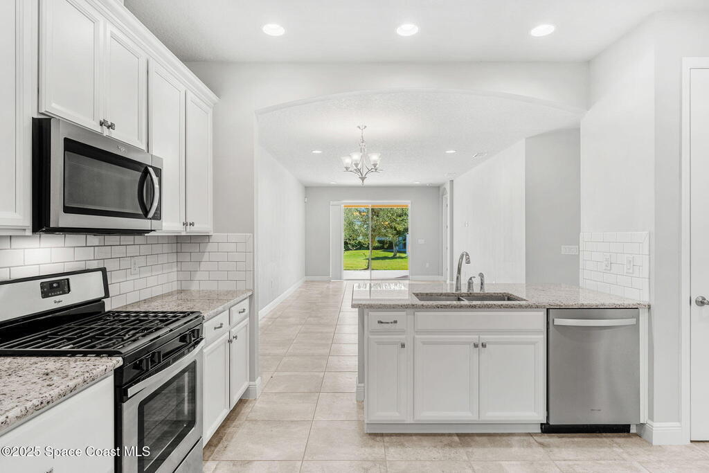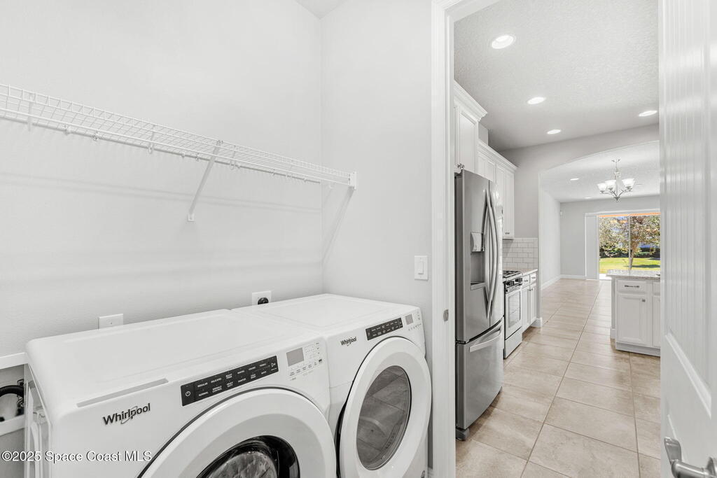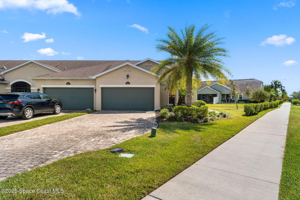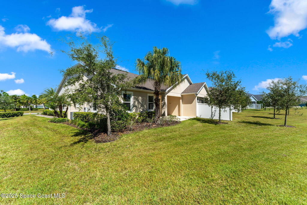 Tucked away at the quiet end of a cul-de-sac, this gorgeous end-unit townhome is located in the highly desirable, maintenance-free community of Loren Cove in Viera. Bright and open, the spacious tiled kitchen and living areas flow seamlessly to a private covered porch overlooking peaceful surroundings--ideal for relaxing or entertaining. The kitchen features a large breakfast bar, cozy nook, and stainless-steel appliances including a gas range, refrigerator, built-in microwave, and dishwasher. All three bedrooms offer plush carpeting, while the primary suite showcases a luxurious garden tub, dual-sink vanity, and separate walk-in shower. Natural gas feeds the range oven & a tankless, gas hot water heater. The laundry room with washer and dryer sits conveniently between the kitchen and two-car garage. Residents enjoy a playground just steps away and full access to the resort-style Addison Village Club with pools, fitness center, and more.