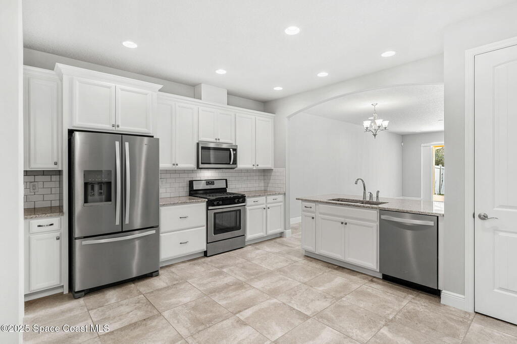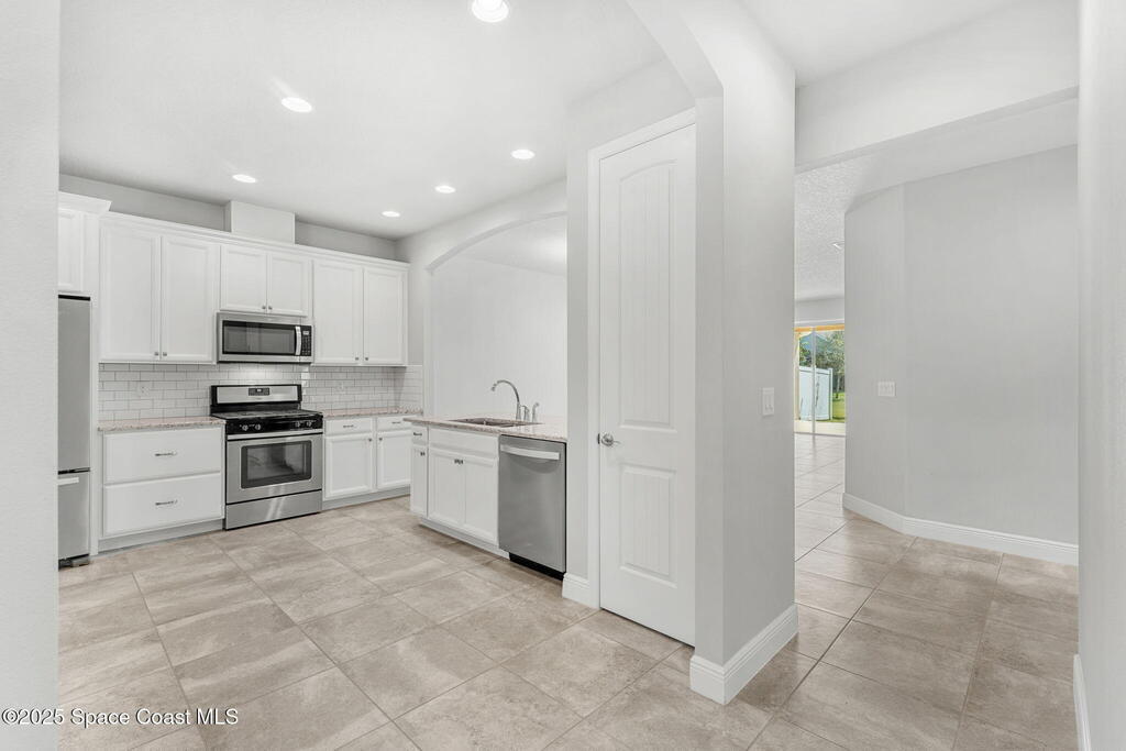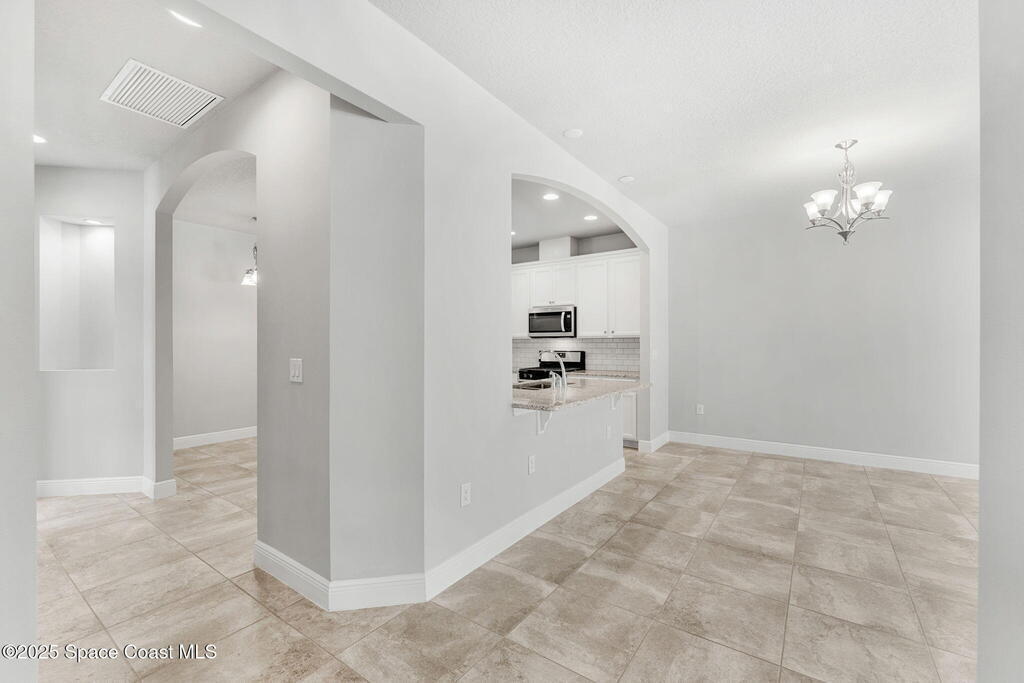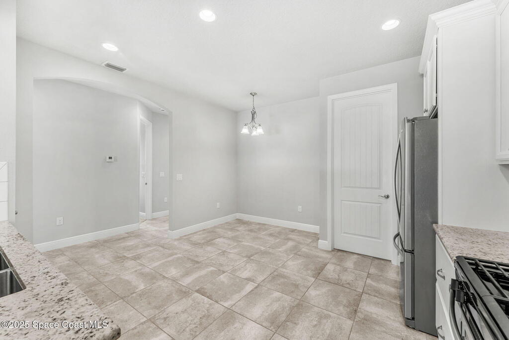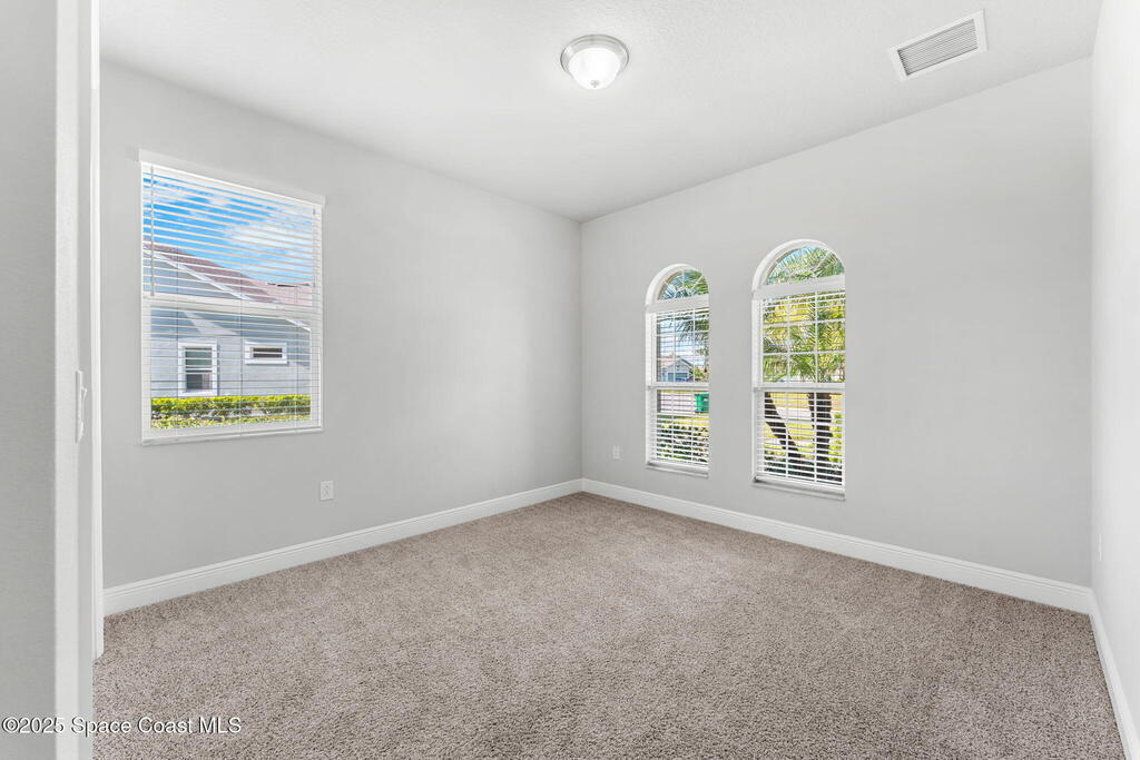 Tucked away at the quiet end of a cul-de-sac, this gorgeous end-unit townhome is located in the highly desirable, maintenance-free community of Loren Cove in Viera. Bright and open, the spacious tiled kitchen and living areas flow seamlessly to a private covered porch overlooking peaceful surroundings--ideal for relaxing or entertaining. The kitchen features a large breakfast bar, cozy nook, and stainless-steel appliances including a gas range, refrigerator, built-in microwave, and dishwasher. All three bedrooms offer plush carpeting, while the primary suite showcases a luxurious garden tub, dual-sink vanity, and separate walk-in shower. Natural gas feeds the range oven & a tankless, gas hot water heater. The laundry room with washer and dryer sits conveniently between the kitchen and two-car garage. Residents enjoy a playground just steps away and full access to the resort-style Addison Village Club with pools, fitness center, and more.