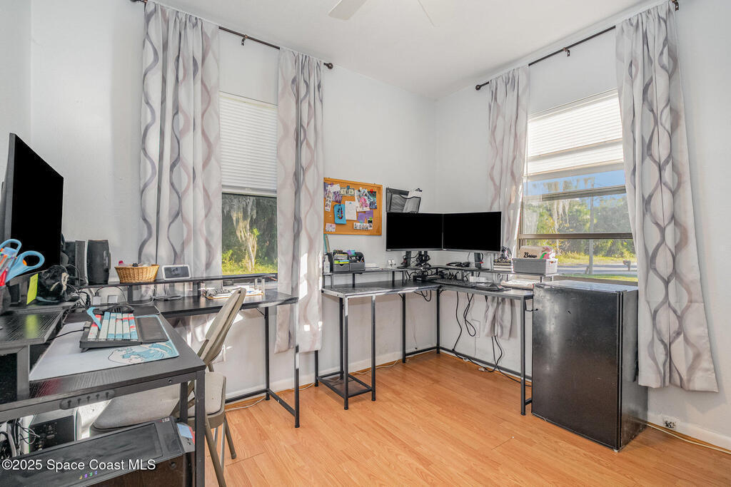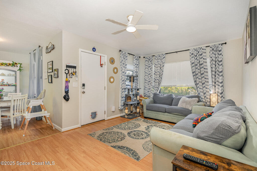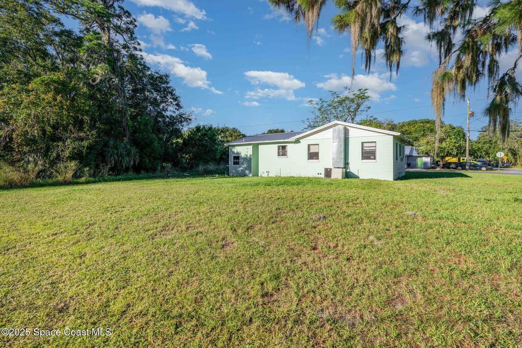 Beautifully updated and move-in ready, this charming 3-bedroom, 1-bath home sits on an oversized corner lot with plenty of room to entertain, garden, or create your own private outdoor oasis. Inside, you'll find a freshly painted interior, new lighting, modern ceiling fans, a bright and cheerful kitchen, and a convenient separate laundry room. Enjoy quiet mornings or evenings on the newly screened-in front porch while taking in the peaceful surroundings. Major updates include a metal roof, new electric panel (2022), and reroof (2022), providing long-term durability and peace of mind. This home has been well cared for and offers a comfortable layout perfect for first-time buyers, downsizers, or investors alike. Located just minutes from Cocoa Beach, Kennedy Space Center, Cape Canaveral, and Playa Linda Beach inside the Canaveral National Seashore. Easy access to Orlando, UCF, and Disney within 30-60 minutes. A wonderful opportunity to own an affordable home in Florida's Space Coast.