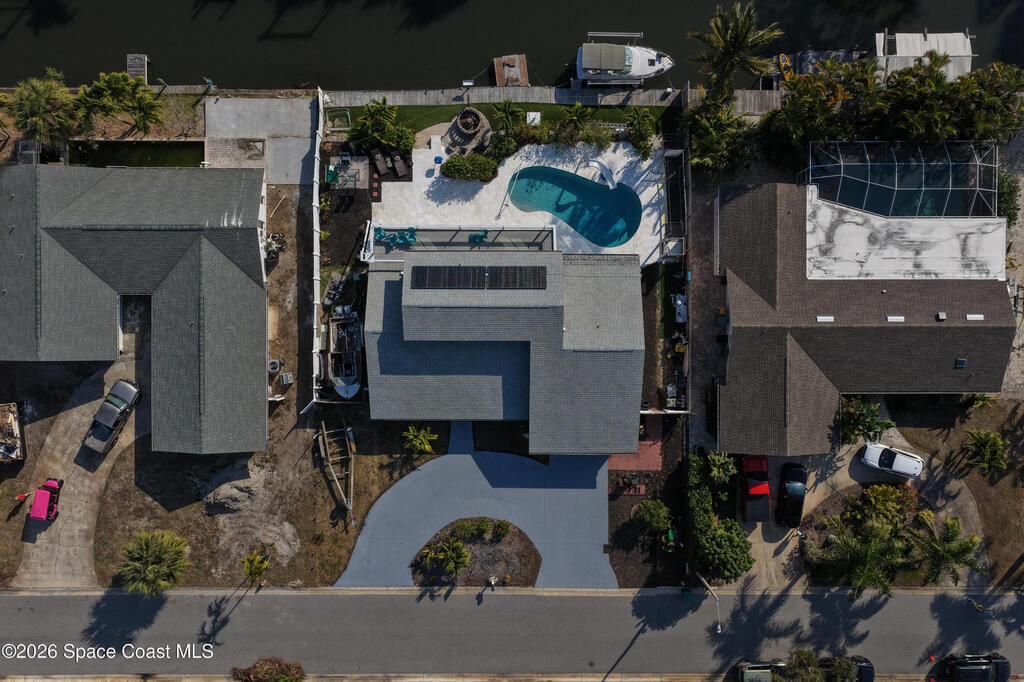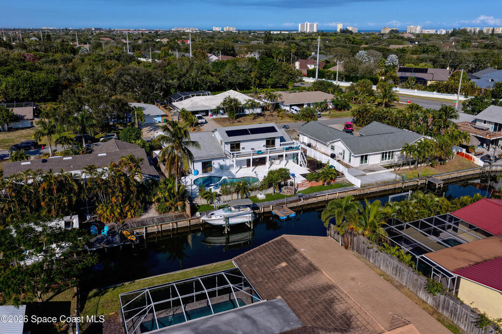 WELCOME HOME to Indialantic Beach, Florida!Enjoy your very own private Waterfront Oasis in this 4 bedroom 4 bathroom home located on a serene canal with easy and quick access to Indian River. Outdoor entertaining options are endless with the in ground pool, boat lift, fire pit, outdoor BBQ space and more. The spacious home has a one of kind theater room with surround sound, newly renovated kitchen with many custom features open to dining area with a custom wet bar fully equipped. Level one features the owners suite with glamour bathroom and slider to pool area along with another secondary bedroom and guest bath. Level 2 offers 2 spacious bedrooms with private bathroom and large balcony off each overlooking pool and canal! Other: Set up for IOT /ALEXEA or Google., large pantry, kitchen island, coastal colors, city water & sewer, half circle driveway, cul-de-sac street is very private too. Minutes to the beach for year round enjoyment. Don't miss this rare opportunity!