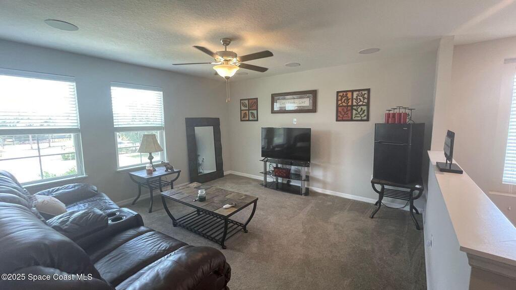 Come today to see this beautiful 2-story home in an excellent location in West Melbourne. It has a 2 car garage, covered patio, large kitchen area & dining room/family room combination. Upon entering the house, you will find an office/bedroom, with access to a full bathroom on the first floor. The full kitchen includes all stainless appliances, upgraded 42-inch cabinets, quartz countertops, and a long kitchen island for extra space. On the second floor, you will find a spacious loft, 3 bedrooms, 2 baths, & laundry room with washer and dryer. The master bedroom has ample space for a king size bed, dressers, and sitting area. It comes complete with a walk-in closet and the master bath has double sinks and tall tiled shower. The floors are tile and carpet throughout.