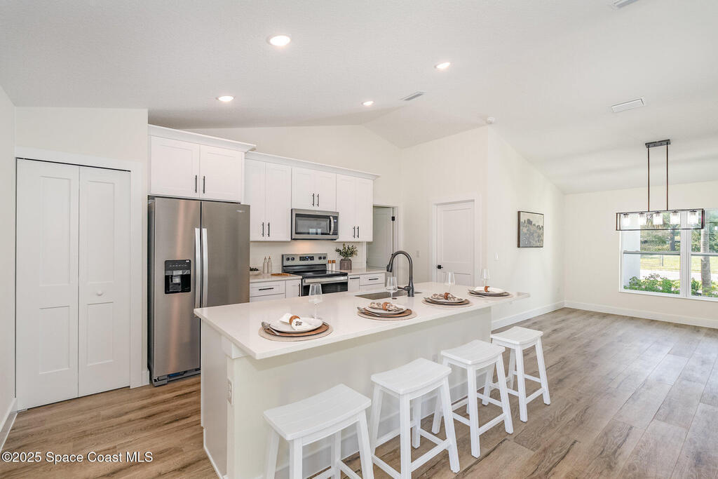 Brand NEW and READY for you! Here's your chance to own a beautiful brand-new home featuring 4 bedrooms, 2 bathrooms, and a 2-car garage! This home showcases a spacious open-concept kitchen complete with a large island, elegant quartz countertops, and stainless steel Whirlpool appliances, including a range, refrigerator, dishwasher, and above-range microwave. The kitchen is beautifully designed with white shaker style cabinets and striking 42'' upper cabinets, alongside plank tile flooring throughout the home!The generous master suite includes a roomy walk-in closet and a luxurious bathroom featuring a freestanding tub, a beautifully tiled walk-in shower, and a double sink vanity. Other notable features include ceiling fans in all bedrooms and the living room, 5 1/4'' baseboards, impact windows, inside laundry room, irrigation system and fenced backyard. Don't wait--schedule your showing today!