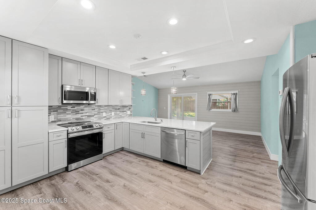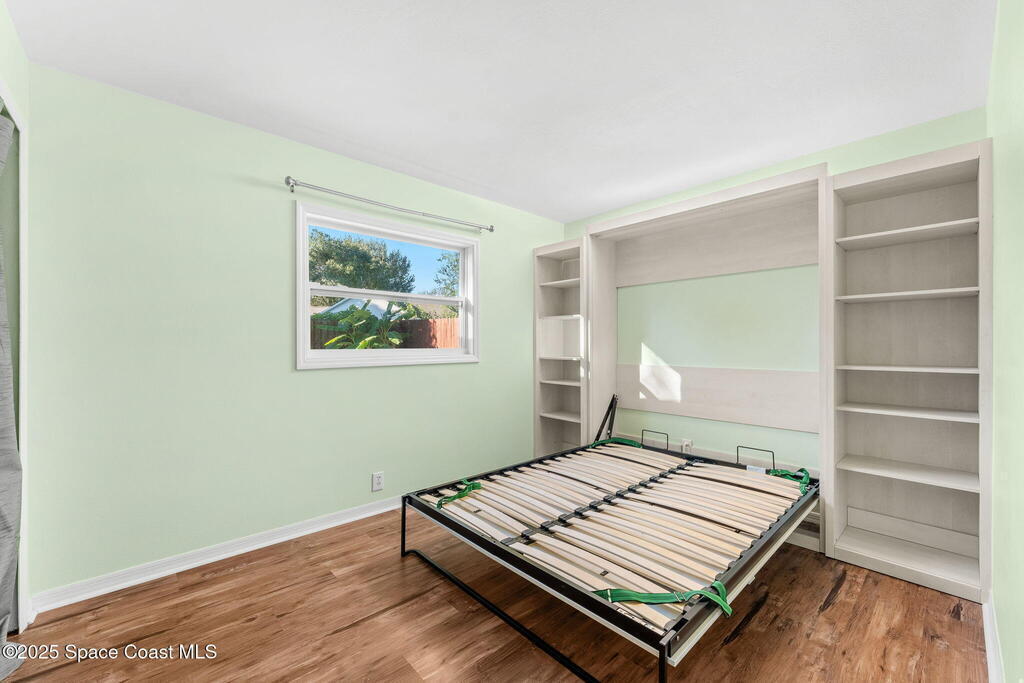 Price adjustment! Looking for your first home or to downsize? This home is move-in ready for you to spend years in secure comfort. Beautifully updated open living and kitchen with so much storage and space for counter seating is ideal for modern living. With impact-rated windows, brand new front door, A/C 2023, Roof 2017, WH 2019, all the insurance items are in place for an affordable policy and ownership costs low! A Murphy bed in the back bedroom maximizes the use of the bright room for office and guests. The privacy fence will keep your pets or children safe with room to enjoy your outdoor space in this centralized community.