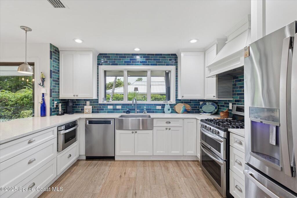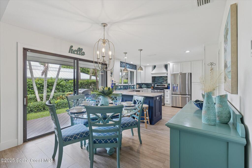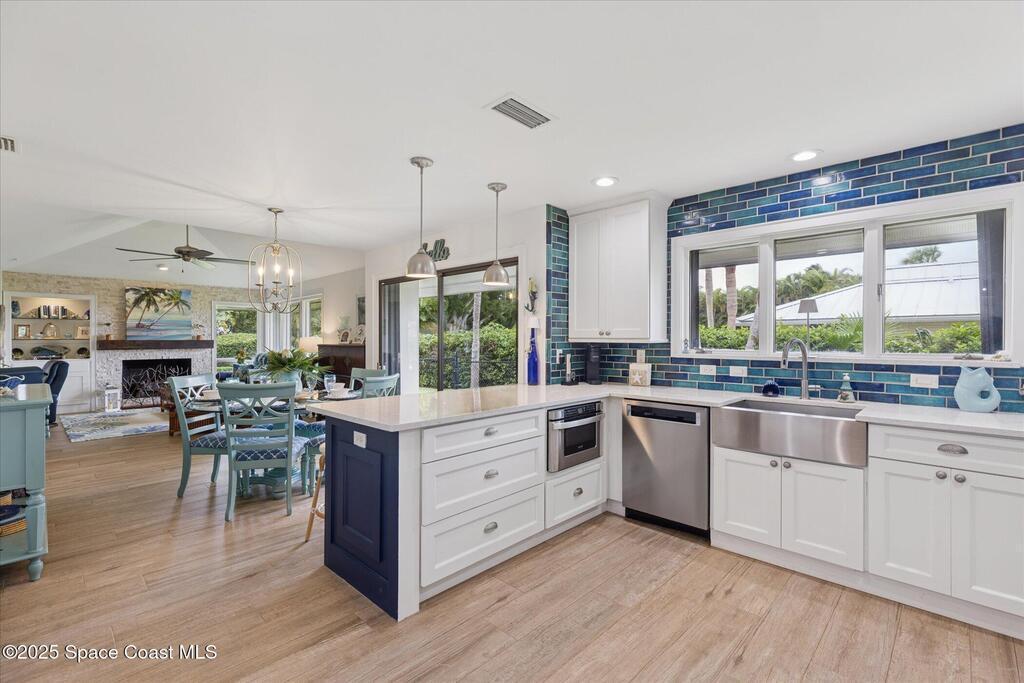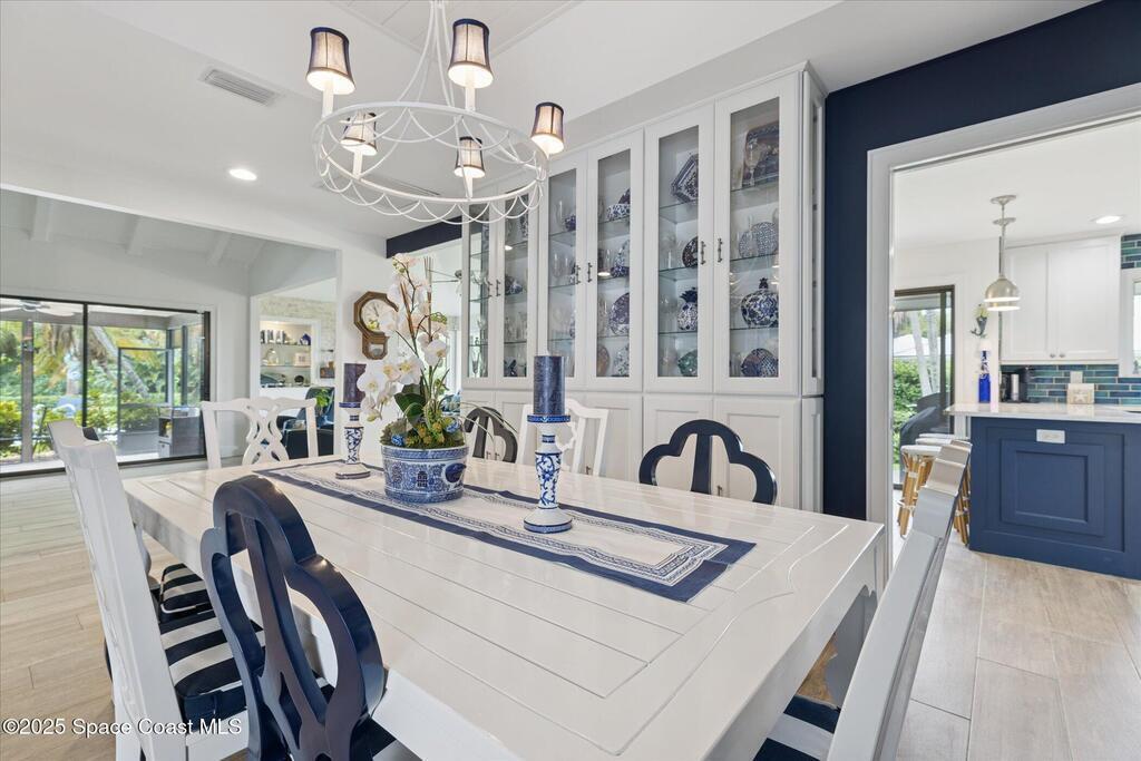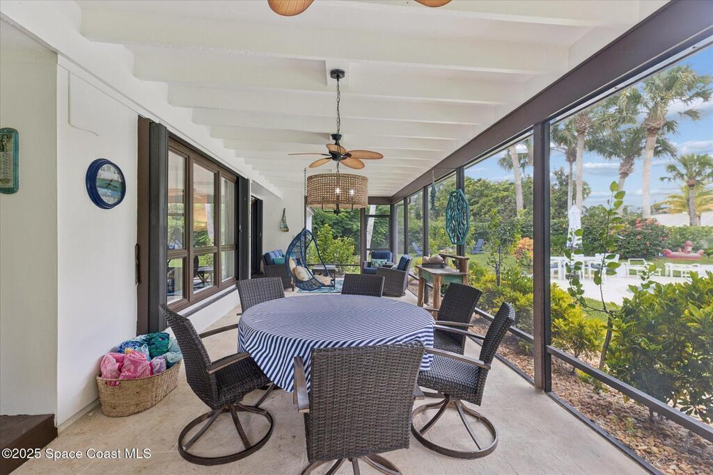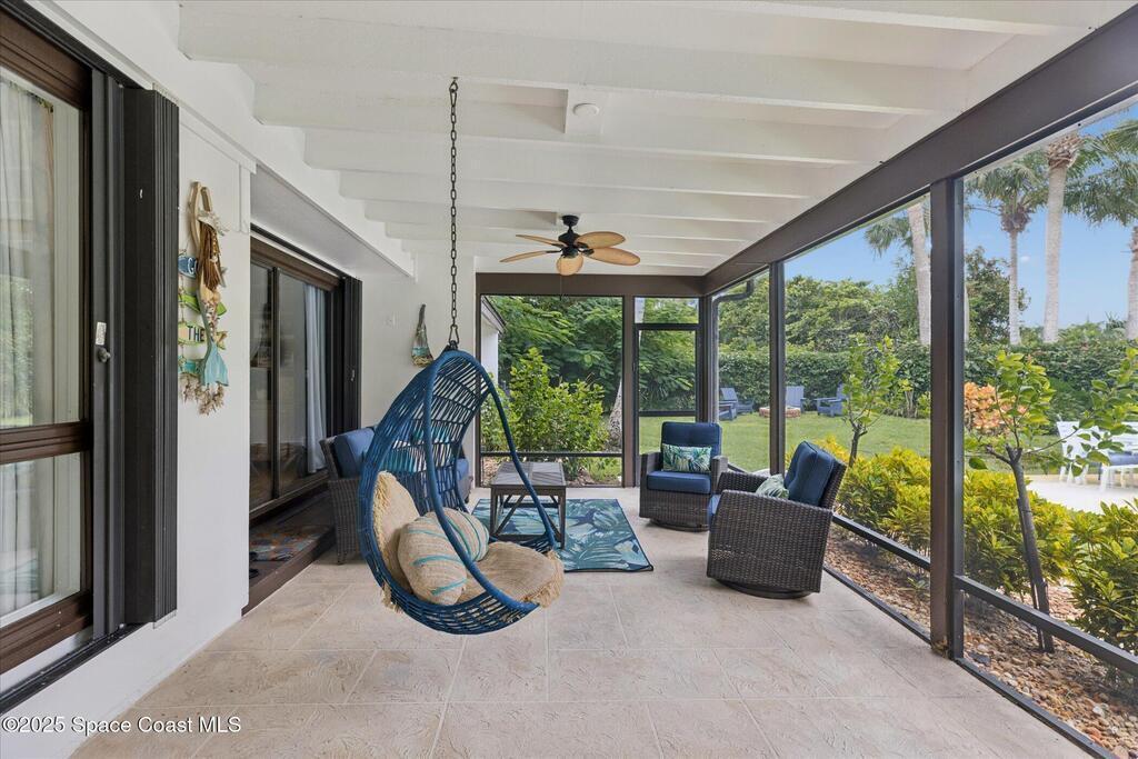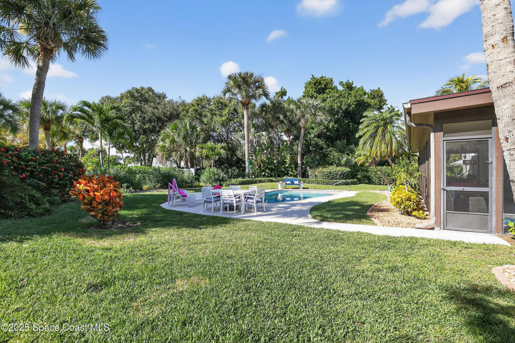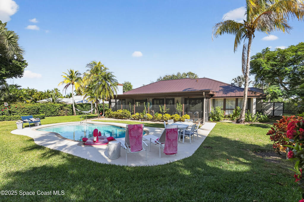 Thoughtfully designed 3BR/3BA coastal pool home with an office is situated on just under half an acre. This elegant residence features wood plank tile flooring throughout. Recent upgrades include a saltwater pool filtration system, gas fireplace, gas range, exterior gas line for grilling, and a newly installed 30-year standing seam metal roof. A spacious, fully fenced yard with well-fed irrigation provides the perfect setting for outdoor living and entertaining.Walk or take a golf cart to deeded beach access offering private parking, lanais, showers, grilling areas, and a protected tortoise habitat. Optional but low HOA of $525 annually. Located just steps from Moorings Yacht & Country Club, the home offers a rare opportunity to obtain a Social Club Membership--bypassing the typical 2-3 year waiting list with club approval.
