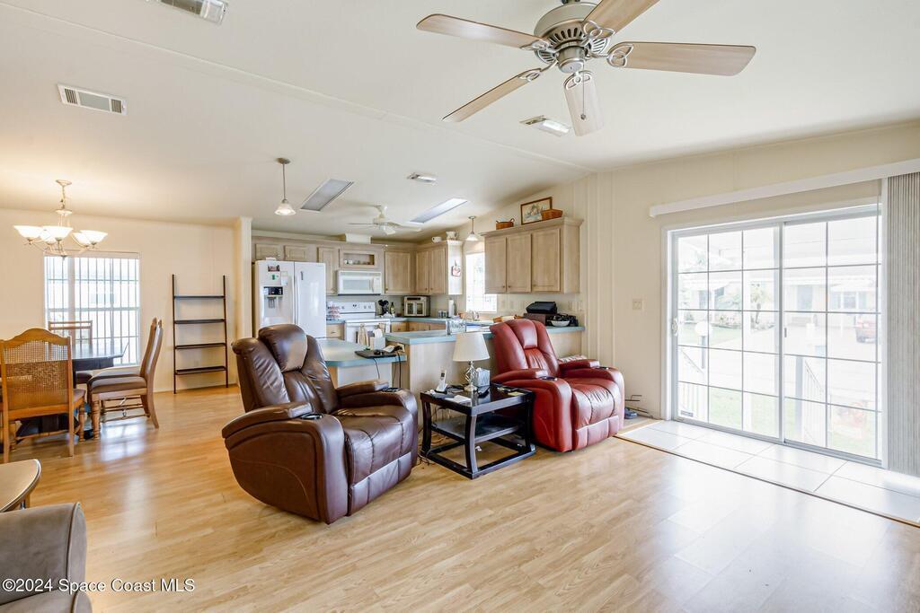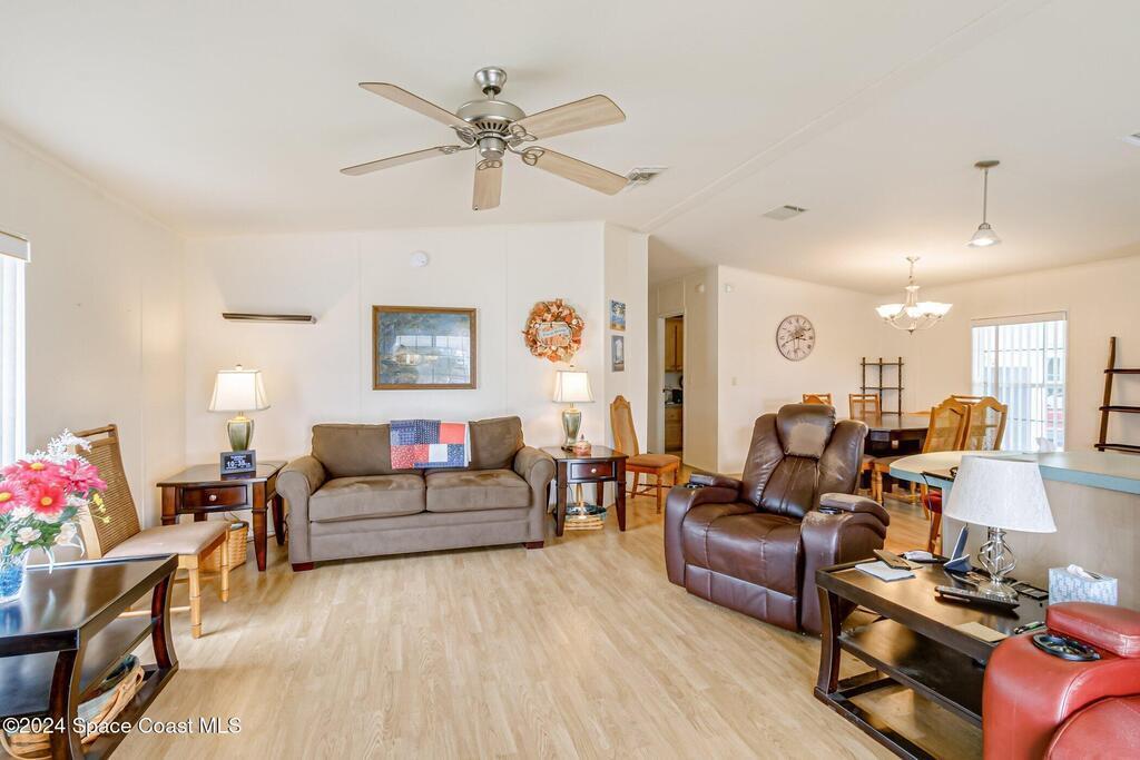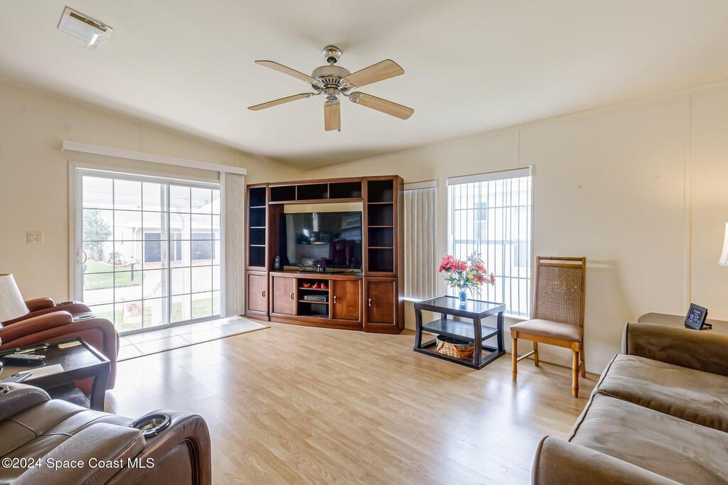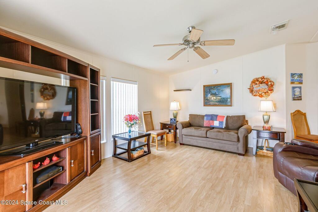 Look at this senior community where you own your land. This well maintained home the perfect place to retire. This home has a brand new roof, june 2025...This 2/2 home will be great for snowbirds or year round living.Watch rocket launches from home or sit on the back patio enjoying the wildlife. Your HOA dues cover cable, internet, lawncare and security.Community clubhouse has many activities, pickleball, tennis or shuffleboard.Close to beaches and shoppingDon't wait, you may be too late !