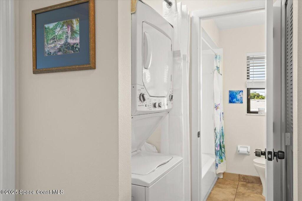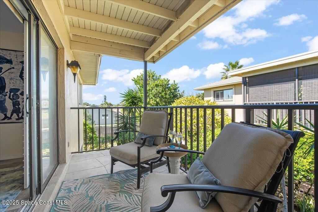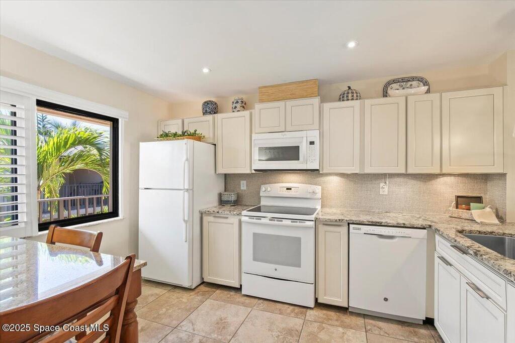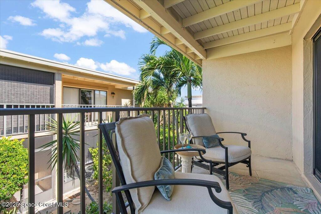 Price Improvement! Welcome home to a secluded hideaway directly across the street from the beach, surrounded by lush landscaping, offering coastal comfort, convenience, and privacy in your upstairs, end unit. This two-bedroom, one-bath beachside gem exudes a small-community vibe. Linger in the beach breeze behind the palms on your private front deck, or enjoy a cup of coffee on the back patio. The stylish eat-in kitchen features granite countertops, a beautiful breakfast bar, and cozy dining nook perfect for casual meals. Two spacious bedrooms, a full bath with a tub-shower combo, and an in-unit stackable washer/dryer make everyday living effortless. Enjoy easy parking and storage in your detached shared garage, then unwind at the sparkling community pool after a day in the sun. Take a short stroll to nearby Doubles restaurant and CVS, and enjoy the newly dedicated, Frank P. Catino Park. Everything you need for your perfect coastal lifestyle, at the price you can afford...beachside!