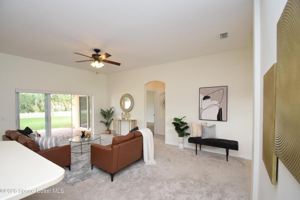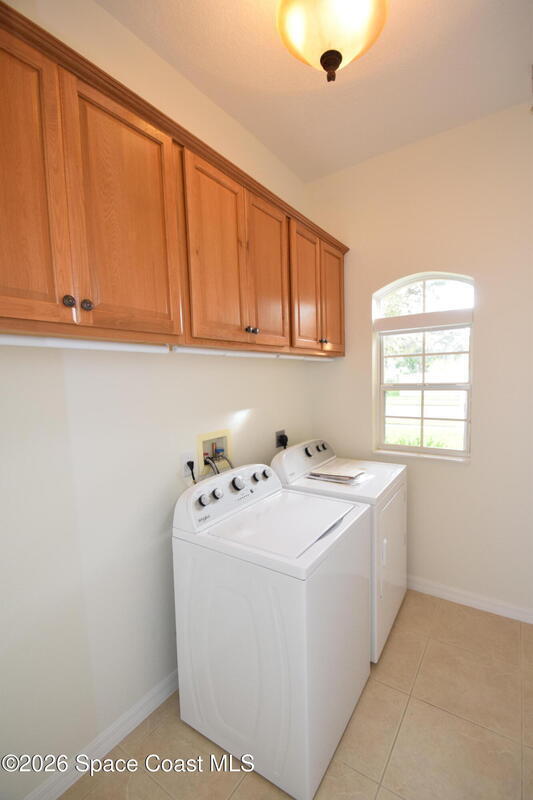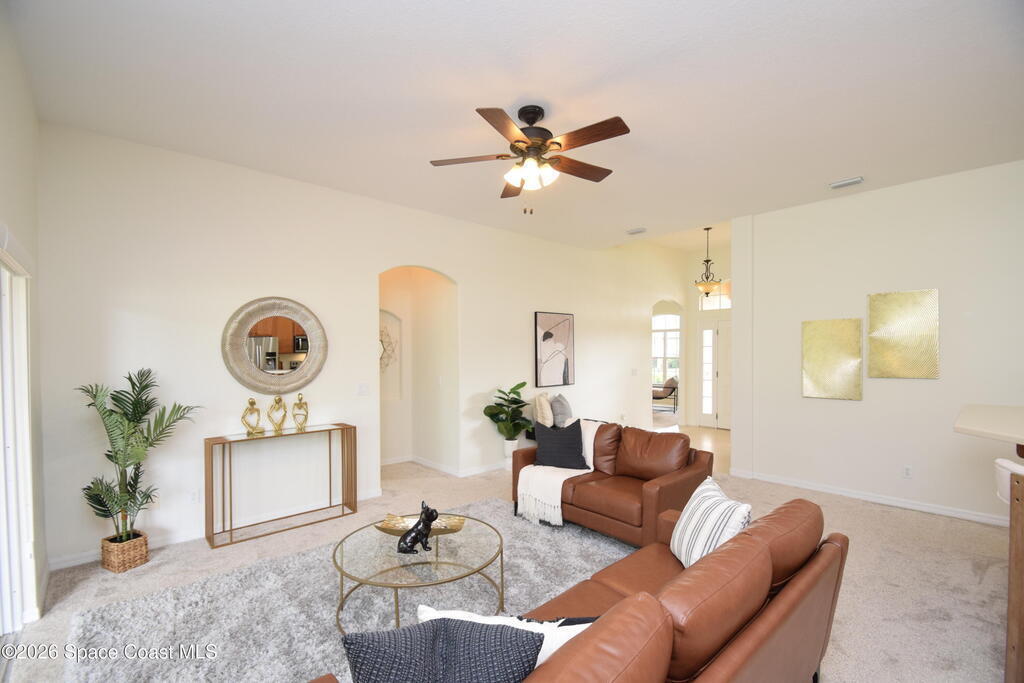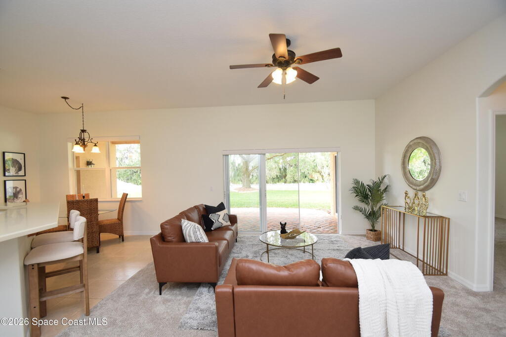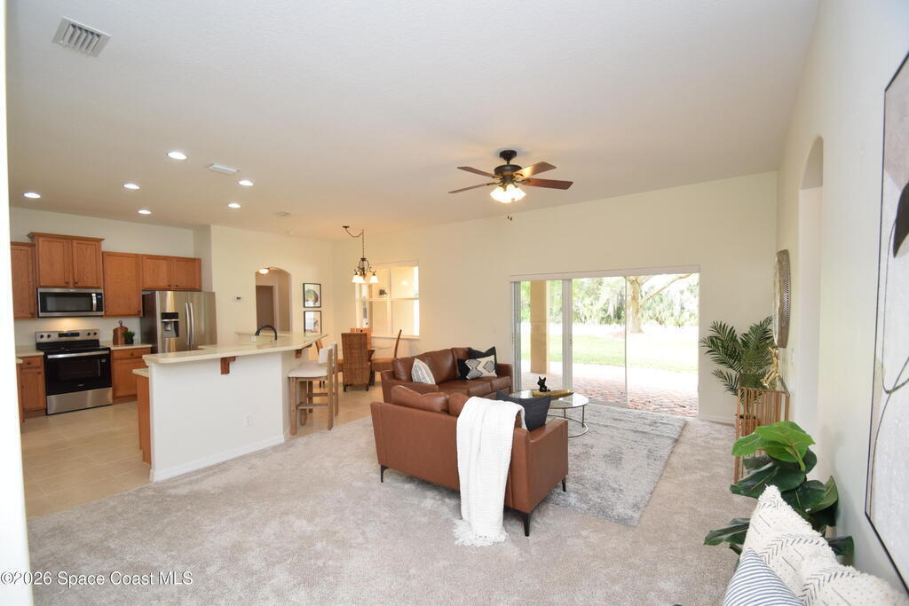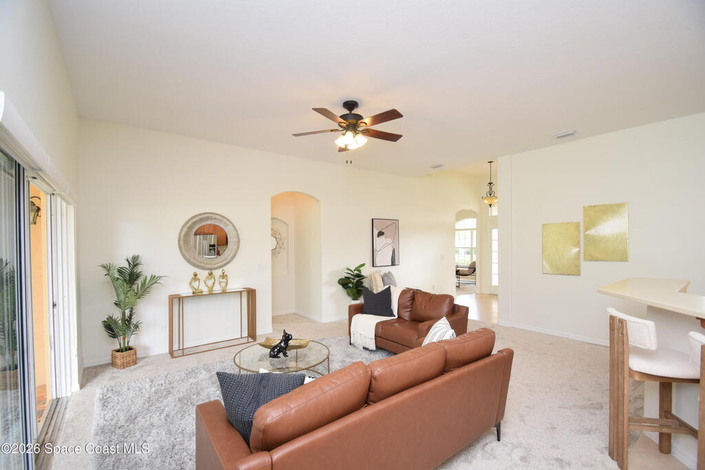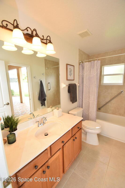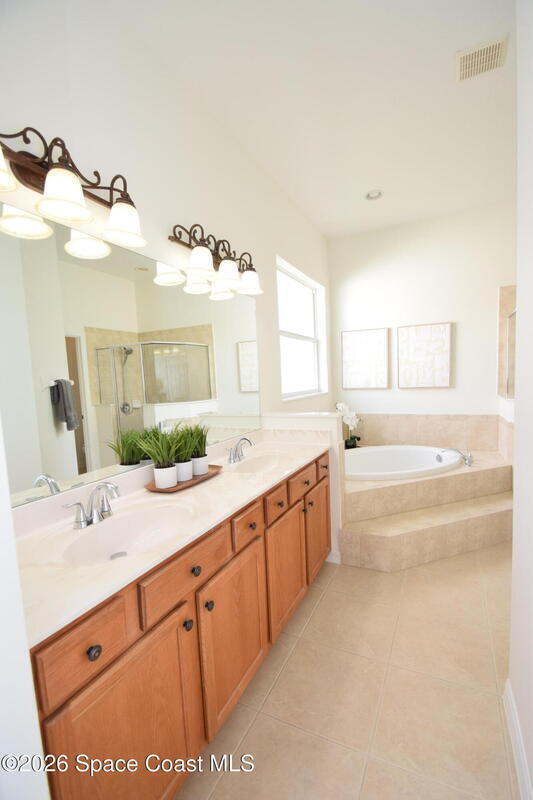 The perfect home for any family! Presenting this meticulous maintained Move in Ready Home in a Gated Community. Beautiful & Welcoming entrance in this 3 bedroom, 2 bath, 2 car garage home. Enjoy large living room / flex space, dining room, A large family room with triple slider door to oversized porch with extensive brick pavers. The Spacious Kitchen offers 42'' wood cabinets with bump stagger design and crown, step up breakfast bar, overlooks the nook area with serene views of backyard. Enjoy a split bedroom plan, owners suite has slider door to porch, a large deluxe bathroom with soaking tub, separate tile shower, dual sink vanity and large walk in closet. Other: roof 2024, new interior paint, Serene views, Dimmers on lightswitch, hurricane panels, All appliances convey, Custom Shades by 3-day blinds, Canal view, private / quiet street with sidewalks, Arch windows, Tall-flat ceilings, Carpet 2024, Lavish landscape, beautiful views, quiet, private, a real Gem of a Home!