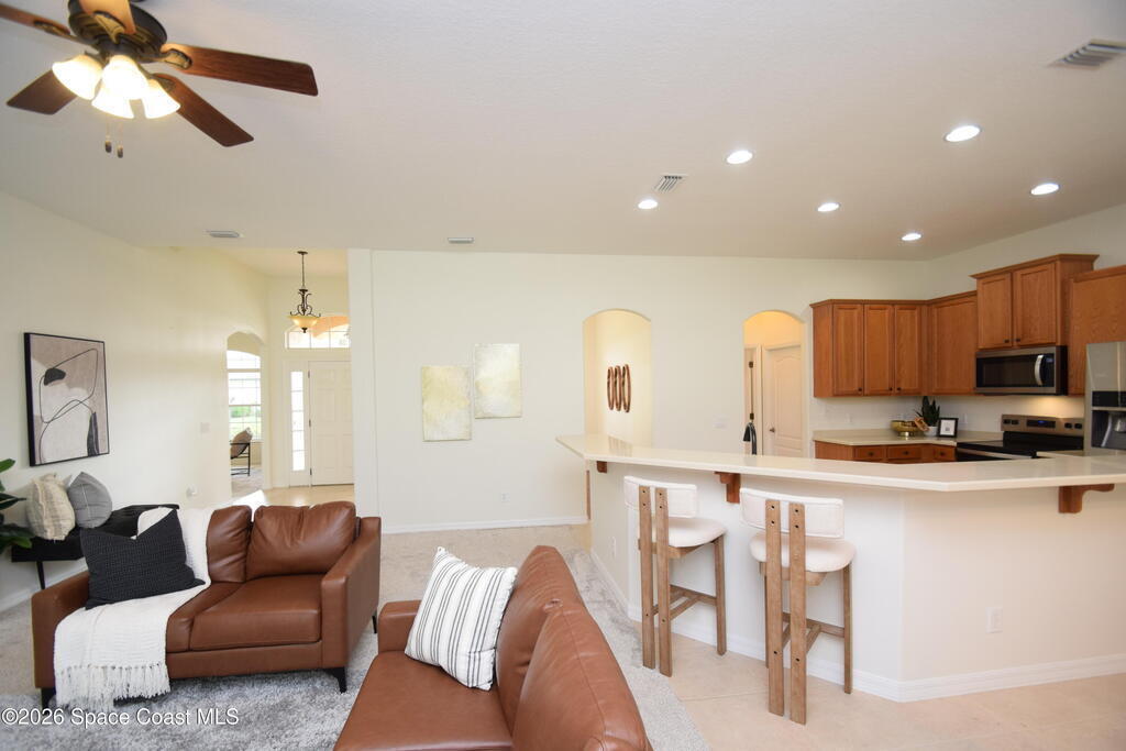 Breakfast Bar, Ceiling Fan(s), Eat-in Kitchen, Entrance Foyer, Open Floorplan, Pantry, Primary Bathroom -Tub with Separate Shower, Split Bedrooms, Walk-In Closet(s)