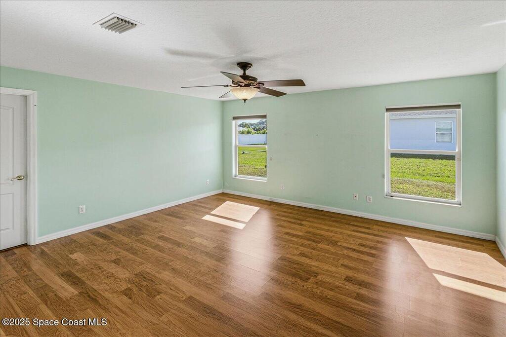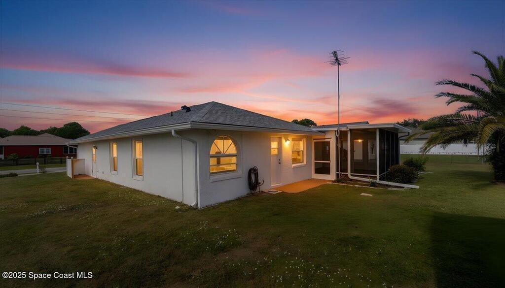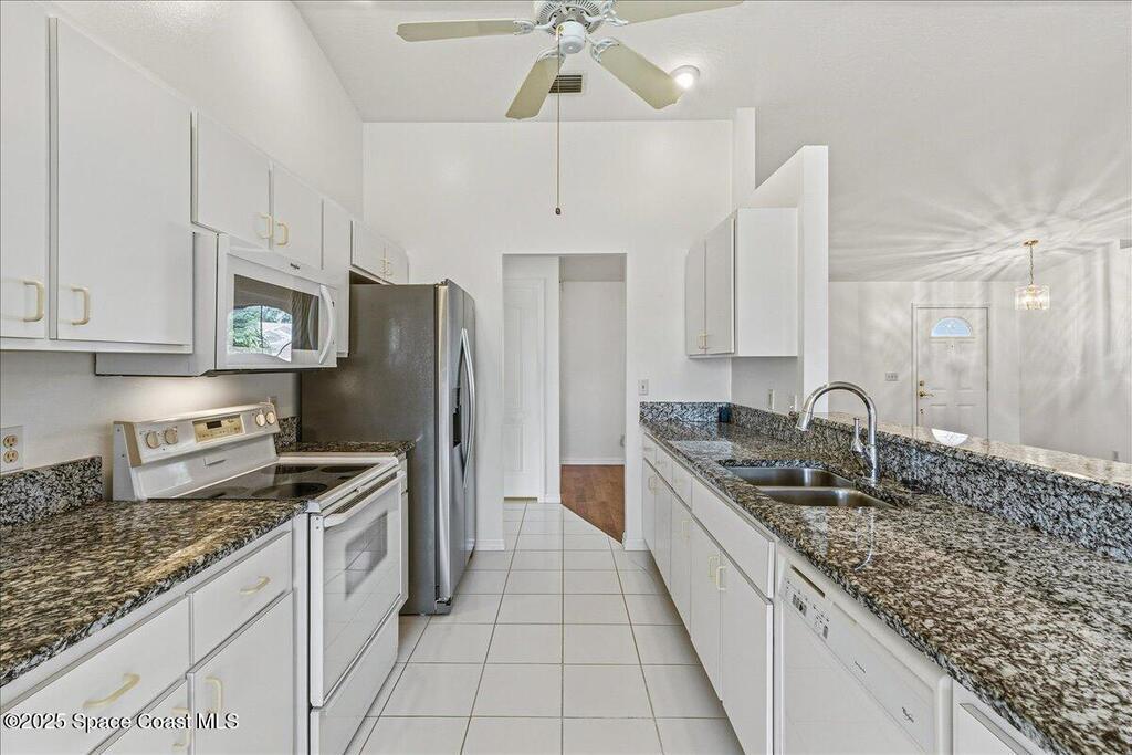 Welcome to this inviting Palm Bay home, featuring an open-concept living space with beautiful real granite in the kitchen and an effortless flow throughout. The bright breakfast nook provides a warm spot to start your day, while the primary bedroom offers generous space and soft, natural light. The primary bath includes both a walk-in shower and a relaxing soaking tub framed by an elegant arched window. A well-kept secondary bathroom continues the home's bright, fresh feel. Enjoy a spacious backyard with room to roam, complete with an electrically equipped shed. The screened porch offers a breezy place to unwind while overlooking the tropical greenery, and the in-unit laundry leads directly into the garage with removable sliding screen doors for added convenience. This well-maintained home blends comfort, functionality, and Florida living at its best.