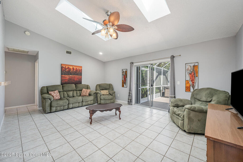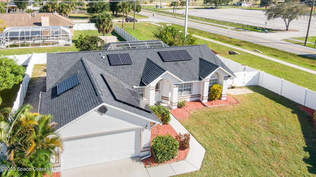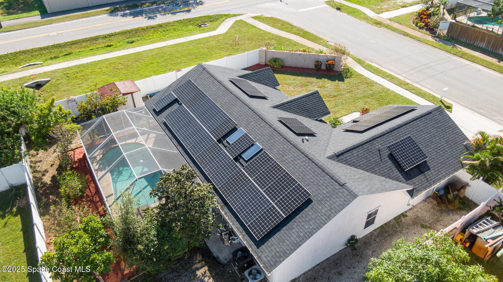 Sun-filled 3 bed / 2 bath with heated salt water pool nestled in the prestigious Bel Aire Palms. Recent upgrades include 2021 roof, 2024 AC and 2022 solar panels. Inside, you'll find an open floor plan with vaulted ceilings, skylights, split bedrooms, and tile / laminate throughout - no carpet. The eat-in kitchen features wood shaker cabinets, breakfast bar, and tile backsplash. Spacious primary ensuite offers a walk-in closet, 60'' vanity, and direct pool access. Entertain all year long in your oversized screened patio with in-ground heated salt water pool and hot tub. The fully fenced backyard sits on a corner lot offering extra space and privacy. Fantastic central location! Minutes to Florida Tech, Downtown Melbourne, the beach, shopping, restaurants, golf, and parks.