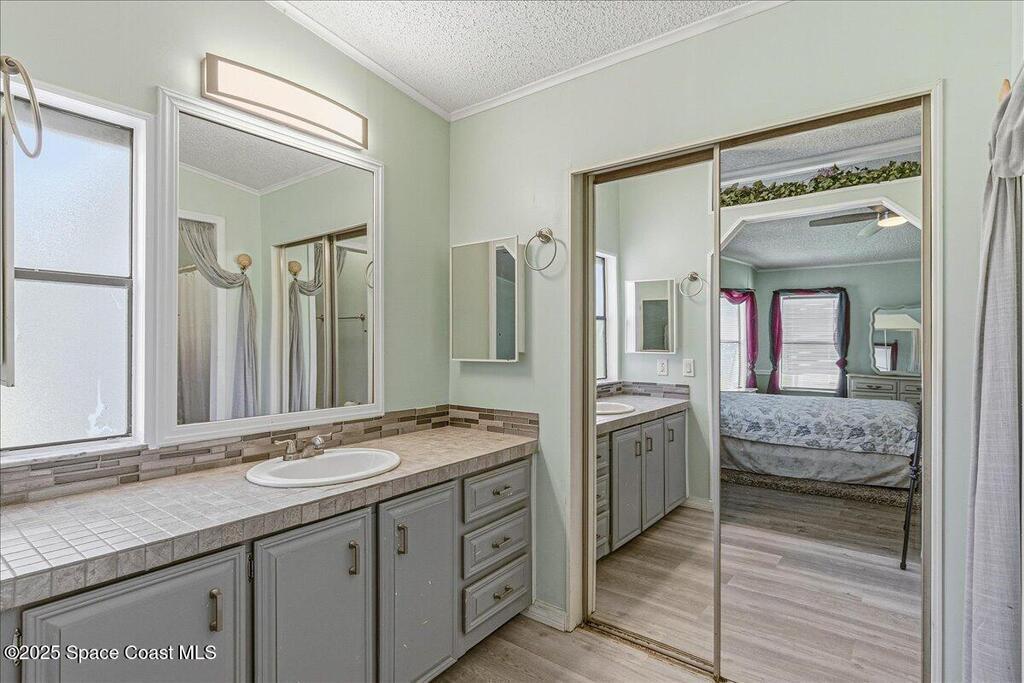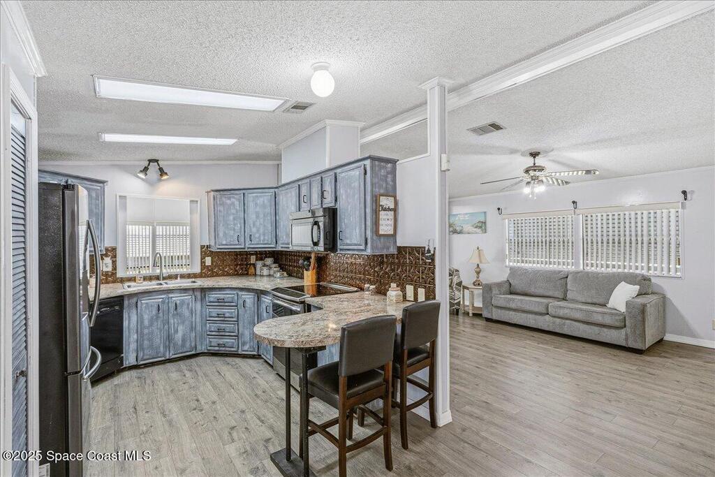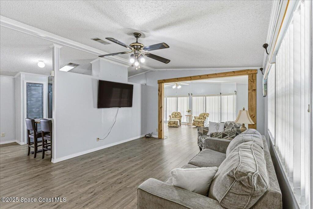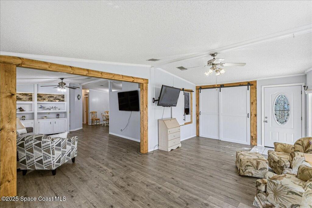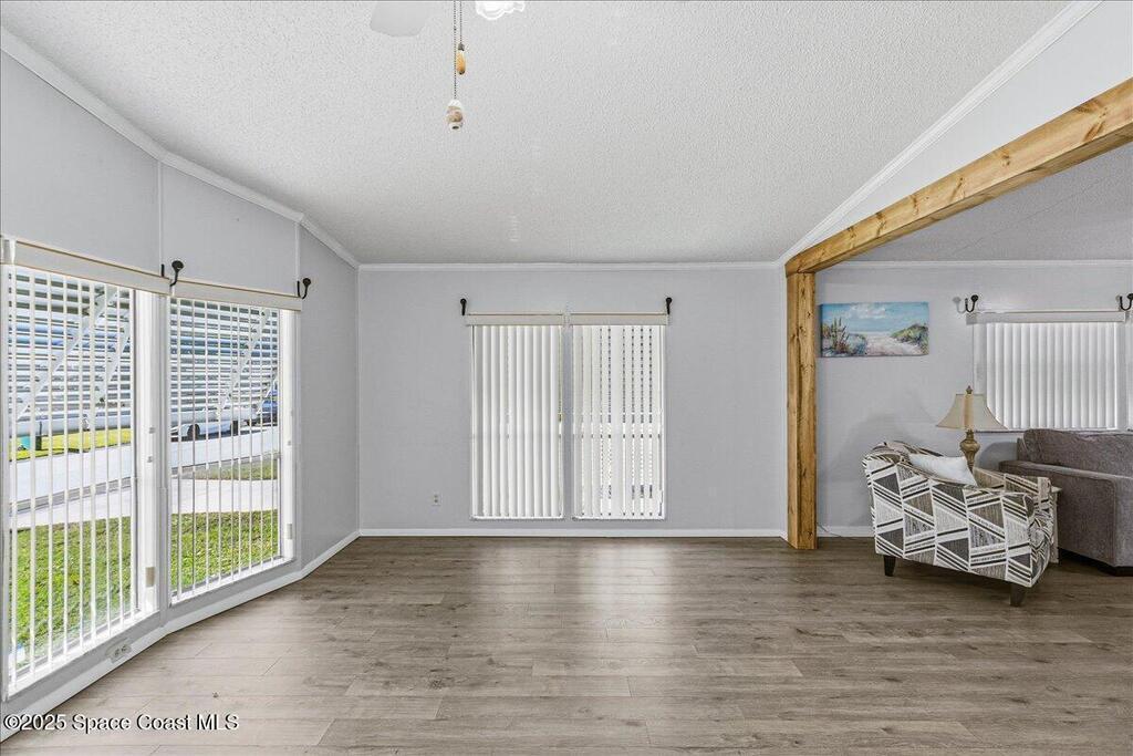 Welcome to your new home in Barefoot Bay on the highly desirable Tequesta Drive. Featuring a new AC (2024), this property offers both comfort and peace of mind. Step inside to find modern vinyl flooring throughout and a spacious kitchen that opens to the oversized living room into the dining. The primary suite is a true retreat, complete with a walk-in closet and walk-in shower. Additional highlights include a large family room that can easily be converted into a 3rd bedroom, ceiling fans and abundant storage space. Residents of Barefoot Bay enjoy exceptional amenities such as golf, multiple pools, tennis courts, a private pier and so much more!