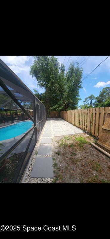 Welcome to your own private oasis in sunny Palm Bay, Florida! This charming pool home features a spacious layout with four bedrooms and two bathrooms. It also boasts a private, fenced-in backyard with a sparkling screened in pool, perfect for relaxation and entertaining. The home has been updated with modern finishes, including a renovated kitchen, updated bathrooms, and stylish new windows and doors. It's the perfect blend of comfort and style!. All new interior doors and trim. Tiled throught home including Garage with A cozy fire place looking over the pool area . Secluded corner property with a peaceful tranquil backyard setting. With a Location like no other, On a Bus Route making Commute To Melbourne and All other Attractions stress free. The property is A Real Gem And a must see. Property needs a roof replacement owner is giving a 13K credit towards a new Roof. With a new Black Roof the property will be a head turner.